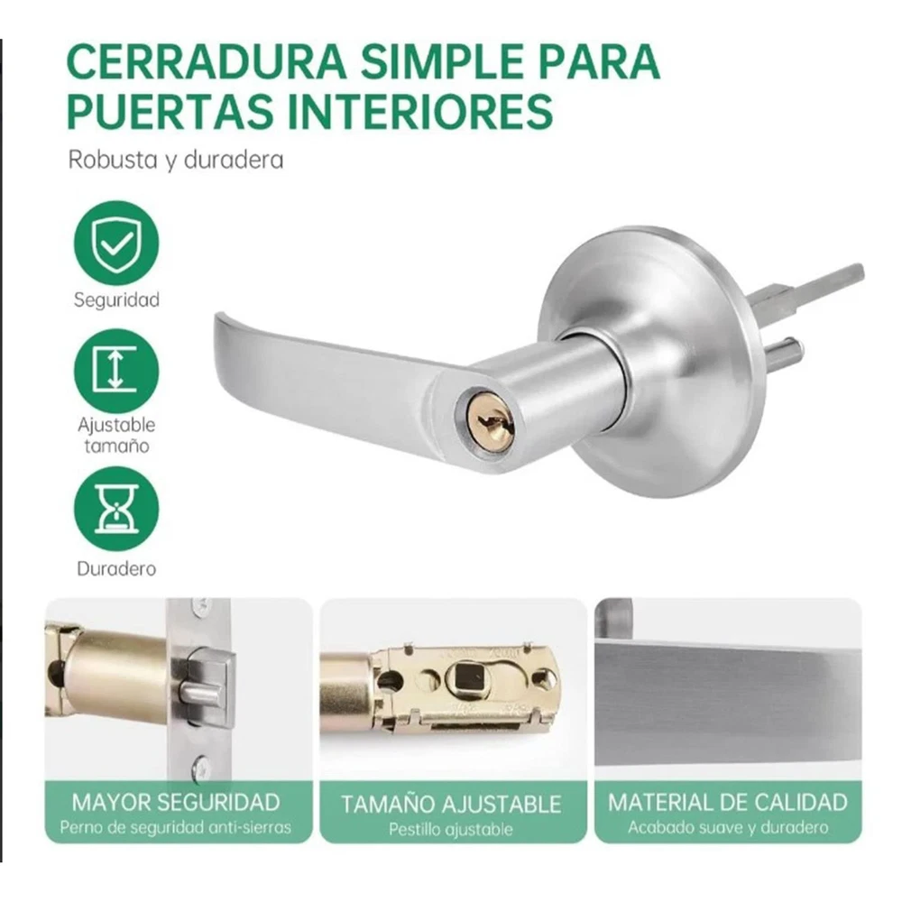 Specification: Item Type: 2 Industrial Door Handle Lock Material: Copper and stainless steel Applicable Door Thickness: Approx: 35-50mm/1.37-1.96in Color: Silver Application: Suitable for bedrooms, bathrooms, hotels, offices, schools, storage rooms, basements, internal doors, front doors, kitchens, children's playrooms. Package List: 1 x Brass Core Lock 1 x Lock Latch 3 x Keys 【Safe and Reliable】the lock hole input handle, the lock hole input function is perfect for outside doors. Keyed door locks have a cylinder with a lock hole on the outside of the house that can only be opened with a special key and a lock cylinder that fits inside and turns. Increase and protect your property from burglary. 【High Quality Material】The door lock is made of stainless steel and brass, featuring high hardness, stability and soft touch, strong and durable. With a premium silver finish, smooth surface and sturdy column bolts to prevent breakage, this is the door lock you must have. 【Versatile】They fit most door types and are suitable for doors from 35-50mm/1.37-1.96in thick. Suitable for bedrooms, bathrooms, bedrooms, hotels, offices, schools, universities, storage rooms, toilets, basements, internal doors, front doors, old schools, hotels, kitchens, children's playrooms. 【Easy to Install】You will receive brass core lock*1, lock latch*1, key*3, easy to install, easy for person to operate, simple installation can save your time. This door handle lock is easy to clean, comfortable to touch and smooth to open and close. 【High-Quality After-Sales Service】 Your satisfaction is our greatest pursuit, we are committed to providing customers with a pleasant shopping experience and satisfactory after-sales service. If you have any questions, please feel free to us. We will give you a satisfactory answer within 24 hours.