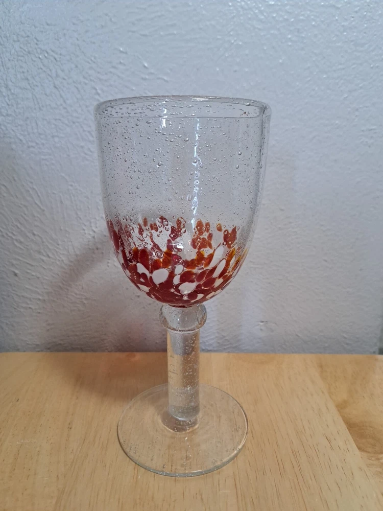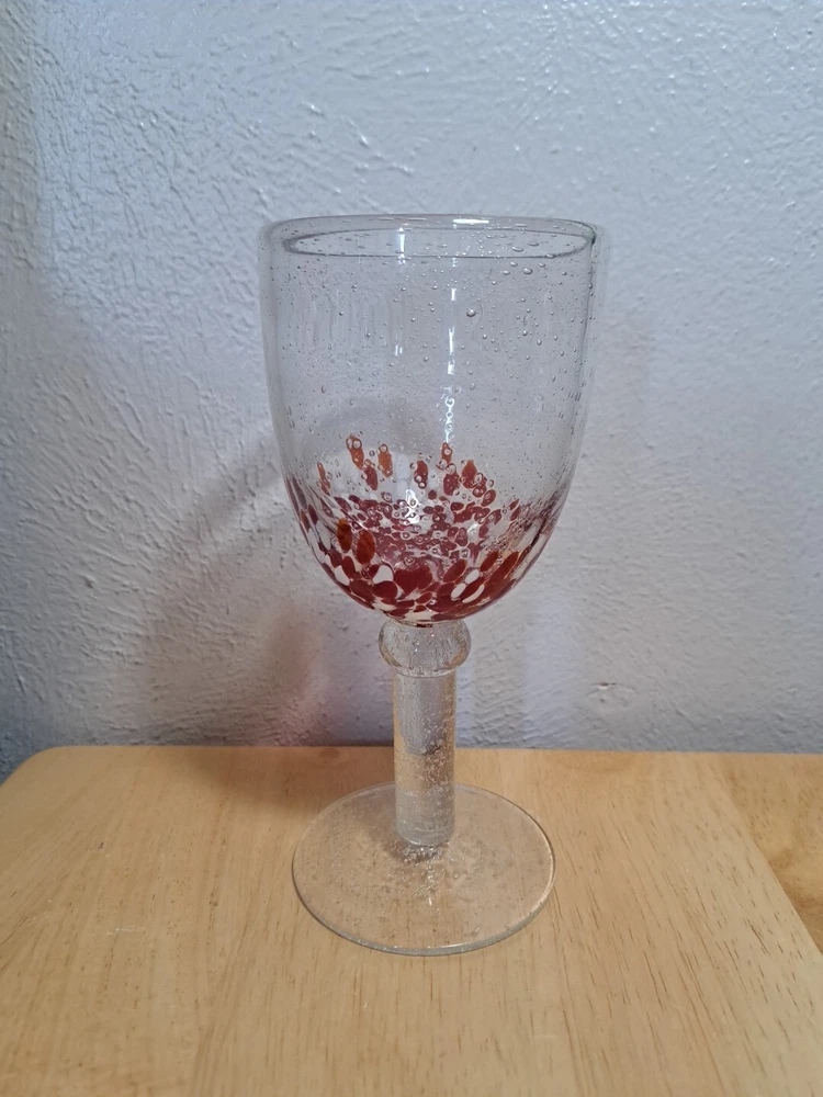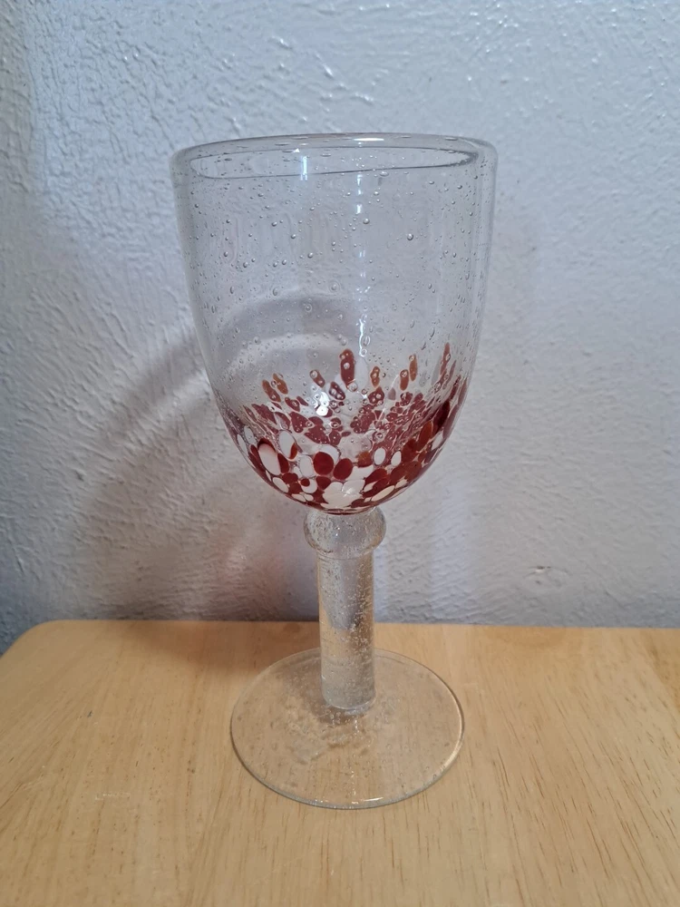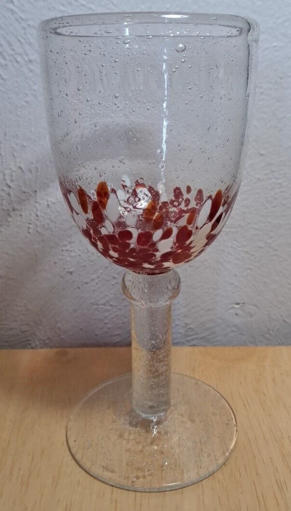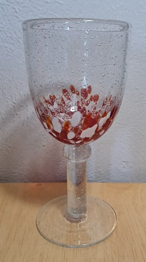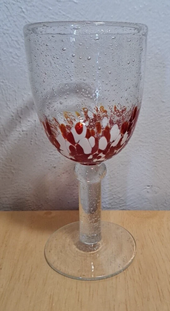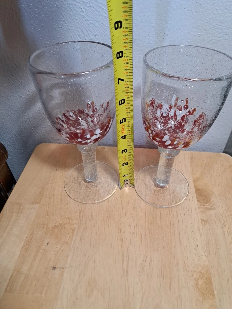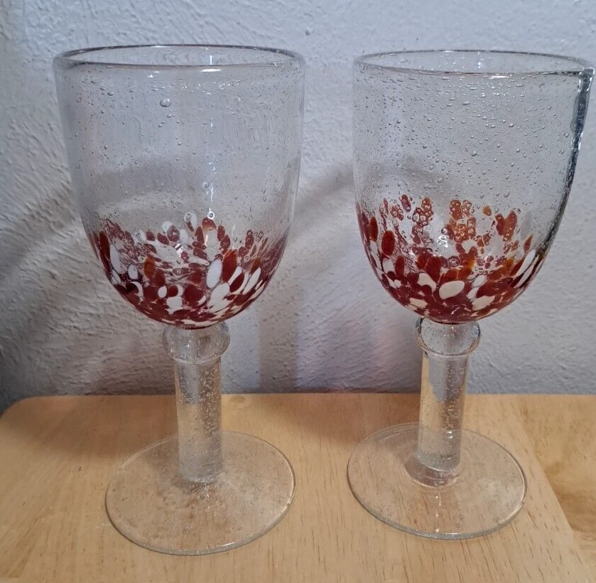 Elevate your drinking experience with these stunning hand-blown glasses. The two-piece set features a beautiful confetti pattern in red and white, making it perfect for all occasions. The glasses are made of high-quality blown glass and come with a set of features such as blown bubbles, decorated designs, and hand-blown construction. These goblets are perfect for both indoor and outdoor use, and can hold a variety of drinks such as wine, water, and more. The set includes two glasses, each with a unique design, making it a great addition to any glassware collection. Impress your guests and enjoy your drinks in style with these one-of-a-kind hand-blown glasses. I try and take good pictures of all the products I sell, please look at the picture. Please contact me for and question and I will help you the best I can.