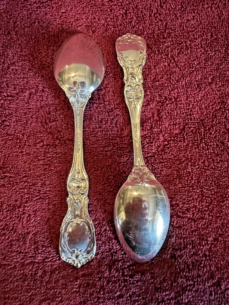 Two Reed & Barton Francis I Sterling Silver Teaspoons. The intricate pattern and the high-quality composition make them a perfect addition to any collection. The spoons are post-1940 and have a new mark without a monogram. Please see photos and ask questions before bidding. Final sale, no returns.