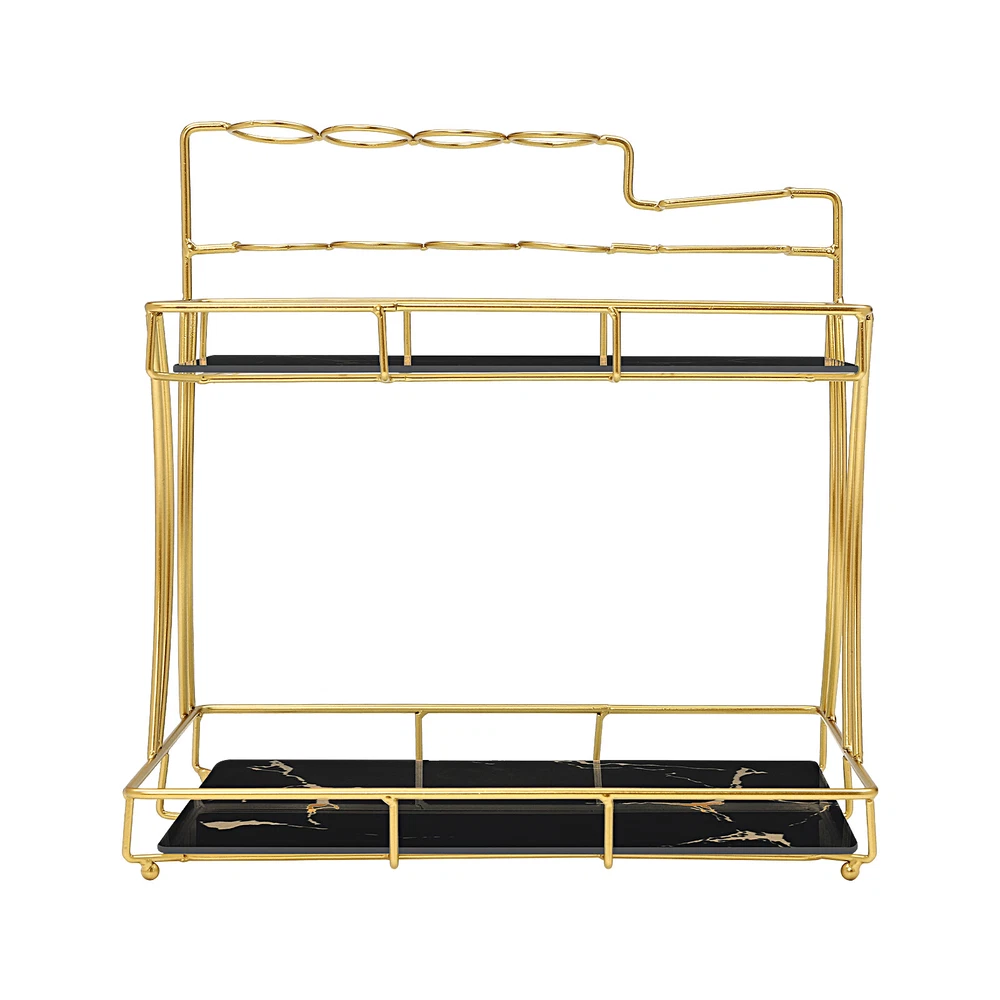 Specification Color: Gold and Black Material: Iron, Glass Surface Treatment: Sanding, Baking and Painting Special Feature: Removable Style: Modern Shelf Type: Tiered Shelf Mounting Type: Tabletop Number of Pieces: 1 Number of Tiers: 2 Assembly Required: Yes Shape: Rectangular Recommended Uses for Product: Face Makeup Net Weight: 2kg/4.4lbs Gross Weight: 2.1kg/4.63lbs Overall Size: 32*21*33.5cm/12.6*8.26*13.18inch Tier Spacing: 20cm/7.87inch Top Tray Width: 15cm/6inch Package Size: 34.5*33.5*22cm/13.58*13.19*8.66inch Package Included 1* Bathroom Organizer Countertop 2* Glass Trays 2 Removable Tier Bathroom Organizer Countertop Makeup Shelf Tray for Bedroom Application It Can Be Widely Used at Home, Bathroom Counter, Kitchen Sink, Coffee bar Corner, and Office, to Store Shampoo, Soap, Razors, Skin Care Products, Etc., and Can Also Be Used to Decorate the Bathroom. Specification Color: Gold and Black Material: Iron, Glass Surface Treatment: Sanding, Baking and Painting Special Feature: Removable Style: Modern Shelf Type: Tiered Shelf Mounting Type: Tabletop Number of Pieces: 1 Number of Tiers: 2 Assembly Required: Yes Shape: Rectangular Recommended Uses for Product: Face Makeup Net Weight: 2kg/4.4lbs Gross Weight: 2.1kg/4.63lbs Overall Size: 32*21*33.5cm/ 12.6*8.26*13.18 inch Tier Spacing : 20cm/7.87inch Top Tray Width: 15cm/6inch Package Size: 34.5*33.5*22cm/13.58*13.19*8.66inch Package Included 1* Bathroom Organizer Countertop 2* Glass Trays Description A Neat and Organized Space Can Make Us Feel Relaxed and Happy. When There Are More Cluttered Items, an Organizer Becomes Essential. the Bathroom Organizer Countertop Made of High-quality Material Is Durable. It Helps You to Organize in an Orderly Way and Say Goodbye to a Cluttered Desktop. It Will Be Your Ideal Life Assistant! Key Features Build to Last: the Product Is Made of High-quality Iron and Glass with Sanding, Baking and Painting Treatment , Making It Solid and Durable, so It Can Keep Beautiful for a Long Time, and Can Be Adapted to Wet Environments Such As Bathrooms. Ample Space: the Product Has Two Tiers with Different Sizes, Which Ensures That You Have Enough Storage Space for Your Belongings and Frees up Countertop Space for a Tidy Bathroom That Will Put You in a Good Mood. It Also Has Separate Shelves for Storing Makeup Brushes, Eyebrow Brushes, Combs or Toothbrushes, Etc. Fancy Decoration: with a Gold Color and Smooth Lines, the Whole Product Is Full of Modernity and Fashion, Which Can Be Adapted to a Variety of Decorating Styles and Add Beauty to Your Bathroom. Ready to Use: the Product Is Almost Assembled at the Time of Delivery, When You Receive the Goods You Just Need to Put the Trays on and Use It Directly, Which Is Time-saving. Ideal Gift: with Its Beautiful Appearance and Practicality, It Can Be Given As a Great Christmas or Housewarming Gift for Your Family and Friends! Protective Packaging: in Order to Better Protect Your Product During Transportation, We Packed It with Air Column Bags and Air Bubble Bags to Ensure That It Can Be Delivered to You Completely. Effortless Clean: Thanks to Its Simple Construction, Removable Trays and Smooth Surface, You Can Wipe Its Stains Away with a Damp Rag or Dash It with Water. Space-saving: with Its Compact Size (12.6*8.26*13.18-Inch), It Can Fit Nicely on Your Desktop Without Taking up Too Much Space, Even in the Corner. Details Glass Trays: the Trays with the Decorative Pattern Are Attractive and Durable. the Two Trays on the Top Are Also Provided with Baffles Outside, Which Can Effectively Prevent Objects from Falling. Higher Spacing: the Tier Spacing of 7.87 Inches Allows You to Place Tall Bottles and Reach Them with Ease. Stable Base: It Allows Placing Items to Stand More Securely. Raised Feet: the Raised Feet Are More Table-friendly and Facilitate Cleaning. Round Edges: It Has Smooth Edges Without Burrs, Which Can Better Care for Your Skin During Use. Notes The Glass Is Fragile, so Please Use It Carefully and Place It Away from Children. Please Allow the Slight Color Difference Caused by the Shooting Light and 1-3 Cm Error Due to Manual Measurement, and Make Sure You Do Not Mind Before Ordering. Payment Delivery details Terms of sales About us Contact us Payment We accept ebay payment 。 Fees such as import duties, taxes are not included in the item price or shipping costs. These charges are the buyer's responsibility. Delivery details Shipping: 2-9 working days to: USA Terms of sales We maintain high standards of excellence and strive for hundred percent customer satisfaction. Feedback is very important to us. We hope that you contact us immediately before you give neutral or negative feedback, so that we can address your concerns. It is impossible to address issues if we do not know about them! About us Your satis faction is our ultimate goal. We work hard to earn your trust and future business. Our certified technicians have tested each item before shipping. The unit comes with 1 year limited warranty on all manufacturing defects. a) If you receive a defective item, you may return it or ask for a discount. Please contact us within 14 days after you receive the package. b) What you returned must be intact and in its original packaging as re? u. Customer is responsible for shipping costs of the returned item. c) We will cover the cost of shipping back t with the shipping rate indicated in the registration page. We will send you a new unit or refund the full payment you paid. Thank you. Contact us Business Hour Business Hour: Monday To Friday: 8:30 AM to 5:00 PM (Beijing China time) Due to time zones, our reply to your questions may not be immediately. But within above working time, we will reply your email within 24 hours. If it's non-workdays, please kindly be patient and wait till Monday. Please contact us with ebay message. Please feel free to contact us if you have any questions. Monday To Friday: 8:30 AM to 5:00 PM (Beijing China time) Due to time zones, our reply to y