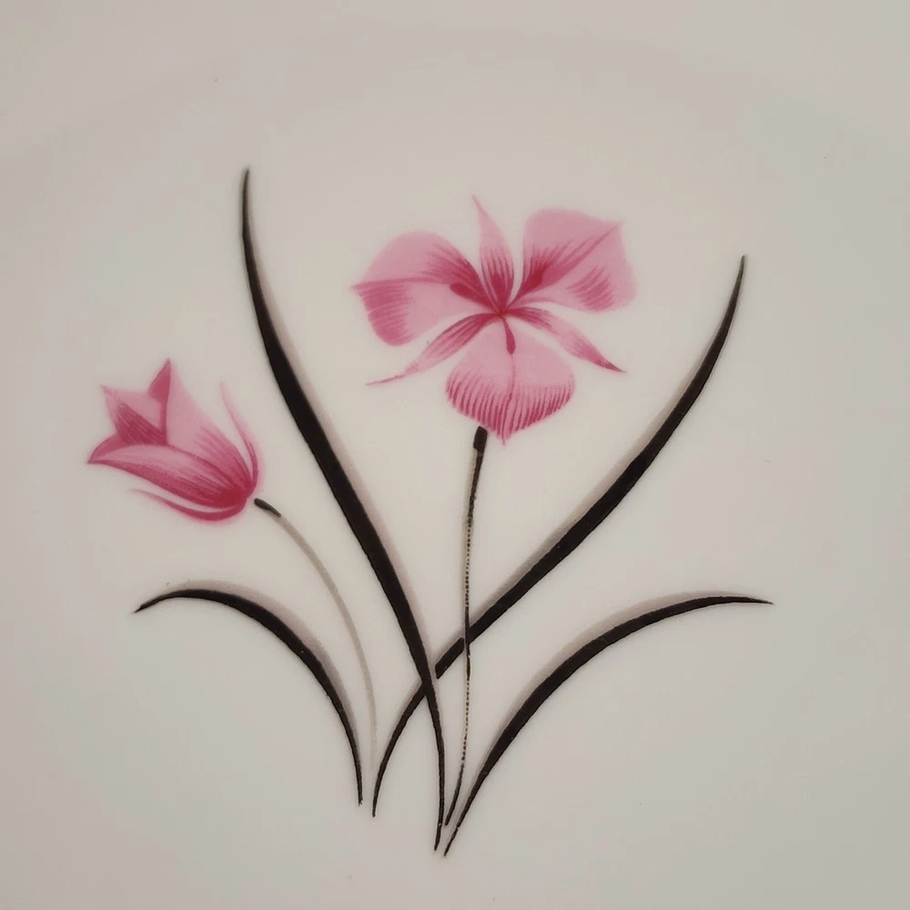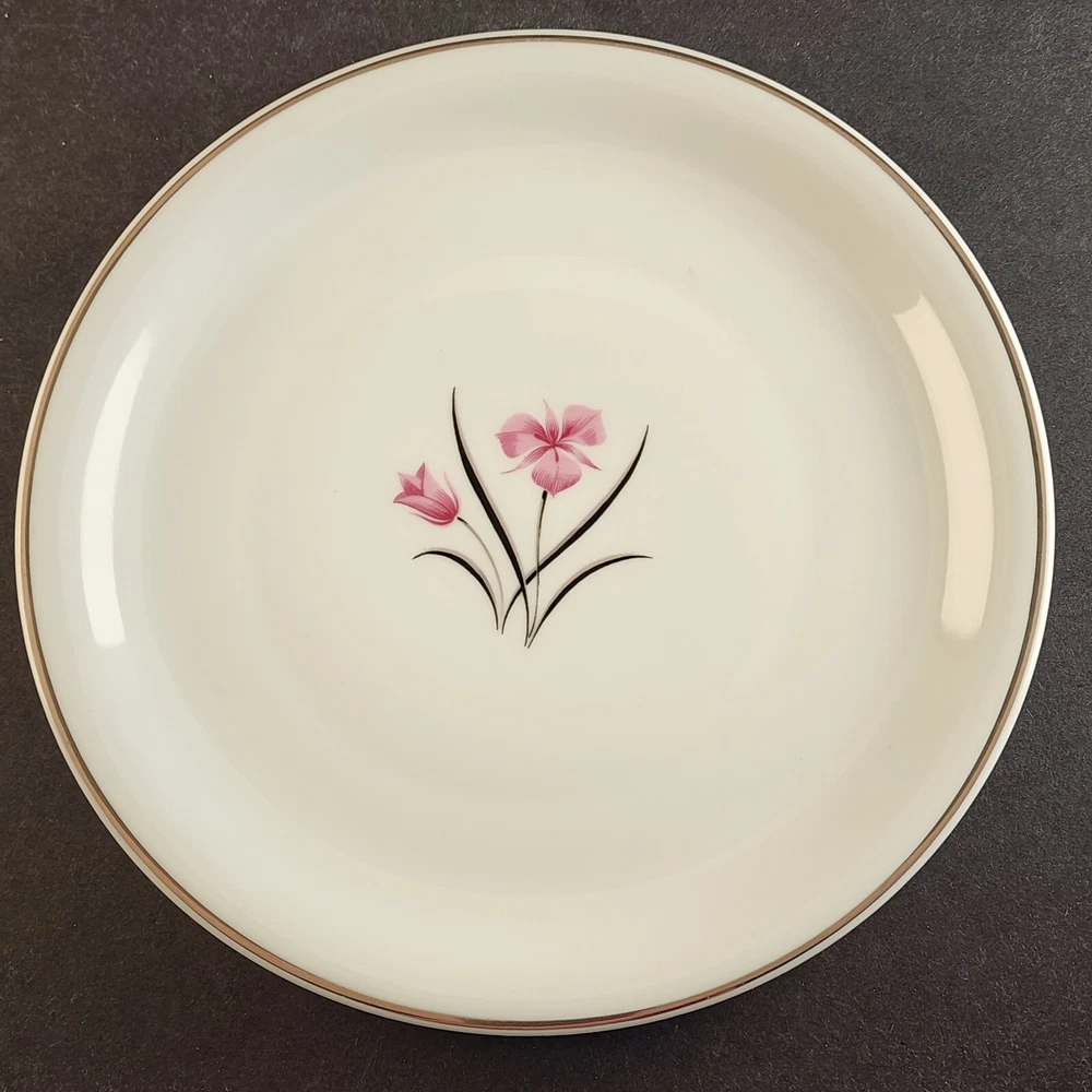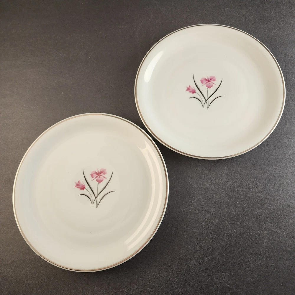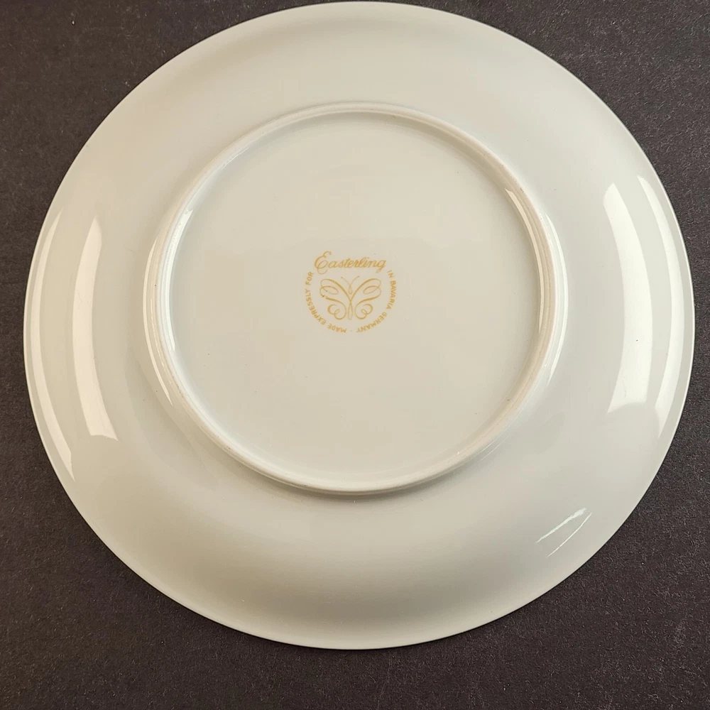2 Salad Plates Caprice China Pattern by Easterling 8.25" Floral with Silver Trim Excellent Condition No chips or cracks Measures about 8¼" across x ¾' high (21 x 1.9 cm) Shipping weight is 1.75 pounds