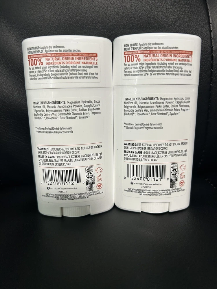 (2) Schmidt's Grapefruit & Apricot Deodorant 100% Natural Aluminum Free 2.65 oz.