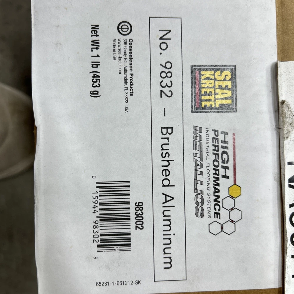 MPN:9832Brand:Seal KreteContainer Size:12ozRoom:Man Cave, Basement, GarageCalifornia Prop 65 Warning:WARNING: This product contains a chemical known to the State of California to cause birth defects or other reproductive harm. For more information go to www.P65Warnings.ca.gov.Color:Brushed AluminumSuitable For:FlooringType:Interior/ExteriorFeatures:High Traffic Areas, For Commercial Use, For Interior, For Outdoor Use, For Residential UseSheen:Shiny