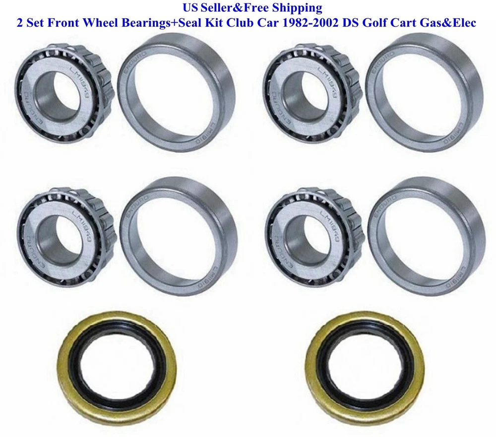 2 Set Front Wheel Bearings+Seal Kit Club Car 1982-2002 DS Golf Cart Gas&Elec *US Seller and Free shipping , Deliver from San Diego,CA *Brand Front Wheel Bearings+Seal Kit *You should confirm the Type before you buy it Features Type 2 Set Front Wheel Bearings+Seal Kit OEM Part Number 1011393 1013135 Fitment MPN: After Market #S 3751, 3995 Notes: Compatible with 1982 - 2002 DS GAS & ELECTRIC GOLF CARTS You'll Receive 2Pcs Front Seals 1013135 4Pcs Bearings 1011393 SKU#: XB.RL.393 x2 Shipping weight:20oz Net:19oz (3-Padded;6-BoxA;12-Medium FR Box)