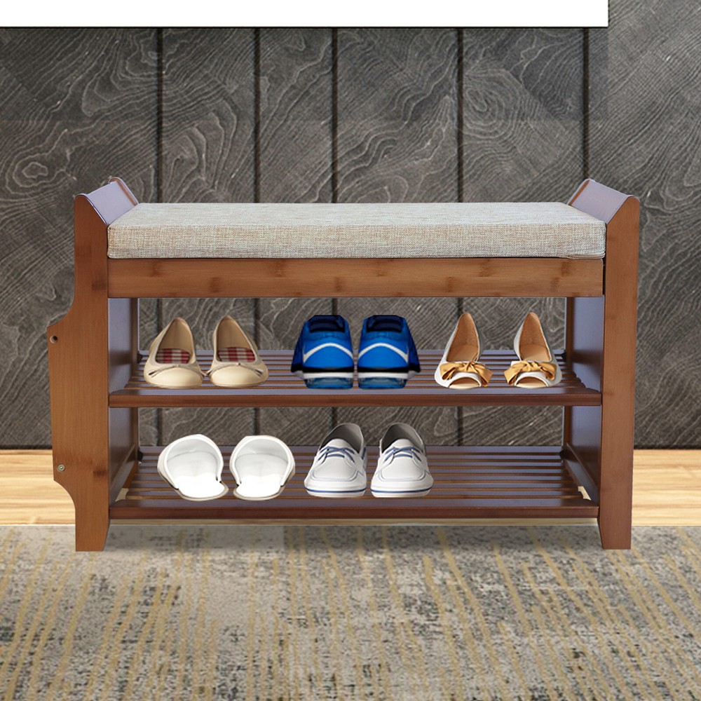 Absolutely love this bamboo shoe bench! It's sturdy, eco-friendly, and looks great in my entryway. The soft cushion makes it comfy to sit on while putting shoes on, and the two-tier shelf keeps everything organized. The storage basket is a bonus for extra stuff. Perfect blend of style and function!
