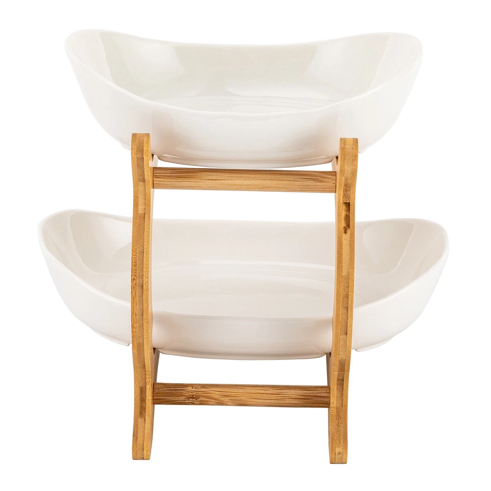 Specification Type: Fruit Bowl Color: White Material: Bamboo, Ceramic Surface Treatment: High-temperature Firing Assembly Required: Yes Small Bowl Size: 20.5*17*5cm/8*6.7*2in Large Bowl Size: 23.5*19*6cm/9.3*7.4*2.5in Rack Size: 14.5*21.5*18.8cm/5.7*8.5*7.4in Total Height: 24cm/9.4in Package Size: 33*15.2*24cm/13*6*9.5 inch Net Weight: 1.3kg/2.87lbs Gross Weight: 1.58kg/3.5lbs Package Included 2* Fruit Baskets 2* Ceramic Fruit Bowls 3* Rods 8* Screws 1* English Installation Diagram 2 Tier Fruit Basket, Fruit Bowl for Kitchen Counter, Fruit Basket for Kitchen Welcome Description Two-tiered Fruit Bowls This two-tiered fruit bowl offers a lovely and space-saving form of storage for your snacks, fruits, snacks, vegetable salads, and any other food that is both beautiful and practical, bringing unprecedented convenience to your life and allowing you to enjoy a more tasteful life! Key Features Safe and Harmless: These two-tiered fruit bowls are made of filtered, mineral-rich ceramic and are also glazed with a lead-free glaze that is free of toxic substances and very safe. And the basket of this fruit bowl is made of bamboo, which is safe, natural, convenient and durable. Ingenious Design: This fruit bowl is shaped like a Yuanbao, chic and beautiful, with an auspicious meaning. At the same time, there is a detailed texture and feel, it gives a layer of sophistication and elegance, to your home to create a quiet and elegant atmosphere. Two-tiered Design: The two-tiered design with a large capacity allows you to sort and place the fruit, more clean and hygienic, not easy to string taste and saves more space. Convenient and Versatile: The floor height of this fruit bowl has been scientifically calculated and has a recessed design in the middle, increasing the height of the opening, and allowing you to hold and place fruit freely. Stable Placement: This fruit bowl's bamboo and wood frame has raised at the bottom, which can fix the fruit bowl and prevent it from tilting and falling. Easy to Clean: This fruit bowl is made of ceramic and bamboo wood, easy to clean, you can directly take a towel to wipe it, or you can put the ceramic bowls in the dishwasher to clean. Easy Installation: The structure of this item is simple, so you just need to screw the screws against the reserved holes to complete the installation. Protective Shipping: This fruit bowl has a neutral carton and foam-protective packaging on the outside to ensure it arrives safely to you. Details Anti-slip Design: Taking into account the anti-slip effect, the bottom of this ceramic fruit plate is not glazed, placed more stable and secure. Heightened Foot: The bamboo wood frame of this fruit bowl has a heightened foot design, allowing you to place it more stably. Application These two-tiered fruit bowls are versatile and can be used as a fruit rack to put fruits, vegetables, cakes, snacks and sugars for any table, wedding, birthday party, buffet, food display table, etc. Specification Type: Fruit Bowl Color: White Material: Bamboo, Ceramic Surface Treatment: High-temperature Firing Assembly Required: Yes Small Bowl Size: 20.5*17*5cm/8*6.7*2in Large Bowl Size: 23.5*19*6cm/9.3*7.4*2.5in Rack Size: 14.5*21.5*18.8cm/5.7*8.5*7.4in Total Height: 24cm/9.4in Package Size: 33*15.2*24cm/13*6*9.5 inch Net Weight: 1.3kg/2.87lbs Gross Weight: 1.58kg/3.5lbs Package Included 2* Fruit Baskets 2* Ceramic Fruit Bowls 3* Rods 8* Screws 1* English Installation Diagram Notes Bamboo products should pay attention to maintenance, do not expose to direct sunlight, do not immerse in water. Due to the process needs, grout traces will appear at the bottom of the ceramic products, not quality problems, which is a normal phenomenon. Due to the splicing of pure natural bamboo, it is normal for bamboo products to have bamboo knots, splicing color differences, and slight cracking, which does not affect their use. Please make sure you don't mind before placing an order. Rough ceramic raw materials contain iron, high-temperature firing products will be slightly red in places, as well as the existence of small bubbles, small black spots, and small lumps, which belongs to the normal process phenomenon. Please allow the slight color difference caused by the shooting light and 1-3 cm error due to manual measurement and make sure you do not mind before ordering. welcome Payment Delivery details Terms of sales About us Contact us Payment We accept ebay payment 。 Fees such as import duties, taxes are not included in the item price or shipping costs. These charges are the buyer's responsibility. Delivery details Shipping: 2-9 working days to: USA Terms of sales We maintain high standards of excellence and strive for hundred percent customer satisfaction. Feedback is very important to us. We hope that you contact us immediately before you give neutral or negative feedback, so that we can address your concerns. It is impossible to address issues if we do not know about them! About us Your satis faction is our ultimate goal. We work hard to earn your trust and future business. Our certified technicians have tested each item before shipping. The unit comes with 1 year limited warranty on all manufacturing defects. a) If you receive a defective item, you may return it or ask for a discount. Please contact us within 14 days after you receive the package. b) What you returned must be intact and in its original packaging as re? u. Customer is responsible for shipping costs of the returned item. c) We will cover the cost of shipping back t with the shipping rate indicated in the registration page. We will send you a new unit or refund the full payment you paid. Thank you. Contact us Business Hour Business Hour: Monday To Friday: 8:30 AM to 5:00 PM (Beijing China time) Due to time zones, our reply to your questions may not be immediately. But within above working time, we will reply your email within 24 hours. If it's non-workdays, please kindly be patient and wait till Monday. Please conta