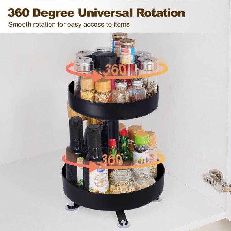 Not only will a trusty spice rack help neatly position everything from dried basil to hot sauces. The 2-tier 10" turntable organizer is the perfect solution for organizing your pantry, medicine cabinet, kitchen, bathroom, and vanity countertop. With its rotating design, you can easily access your items without having to dig through clutter. Made with durable materials, this 10-inch spinner is built to last. Whether you're a busy mom or a professional chef, this versatile organizer will make your life easier and more organized. Sturdy and durable Rotate smoothly Spin for easy access Save counter space Easy to install Multipurpose organizer