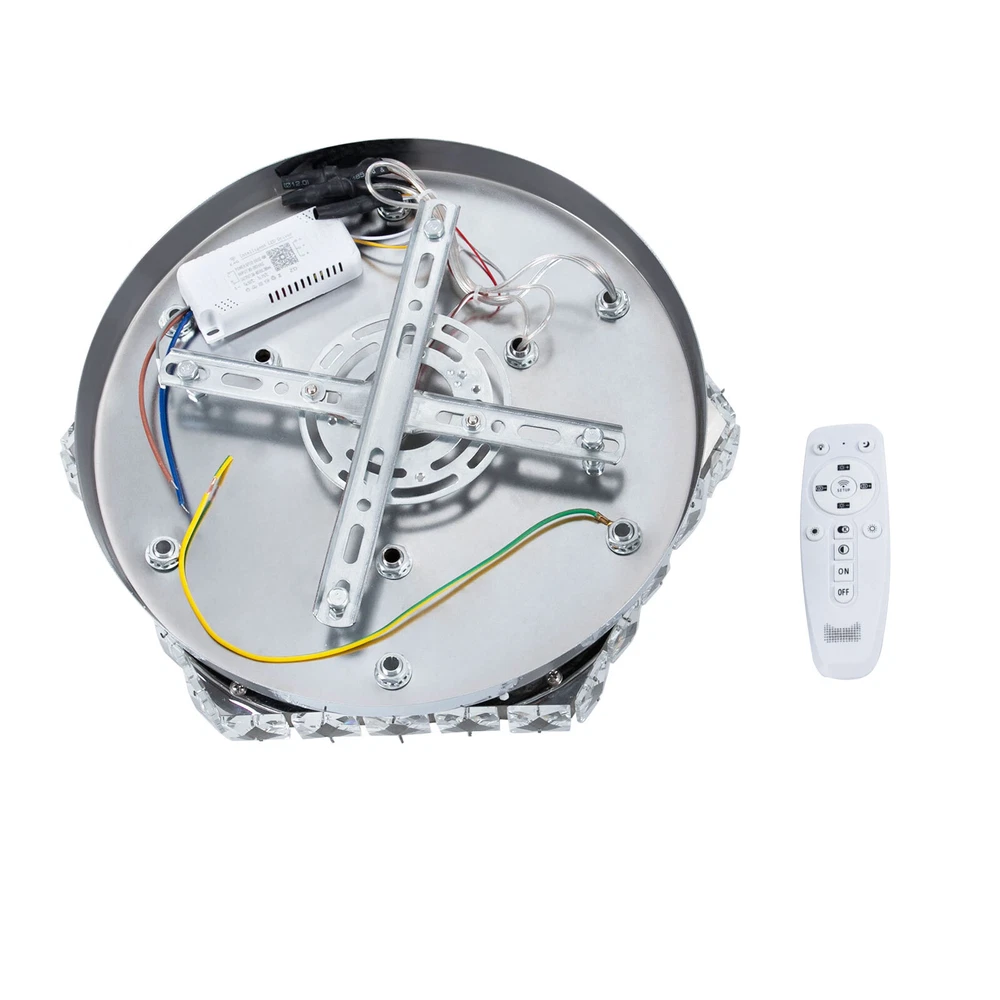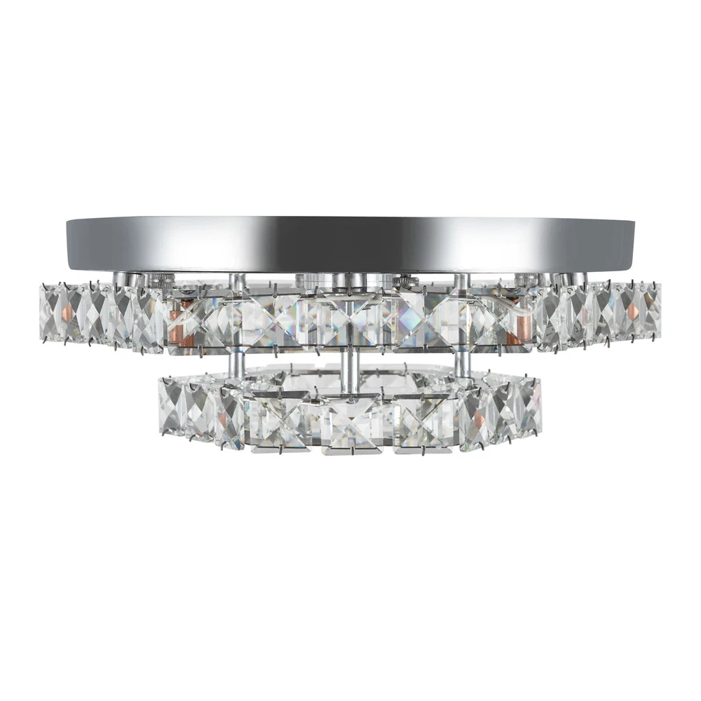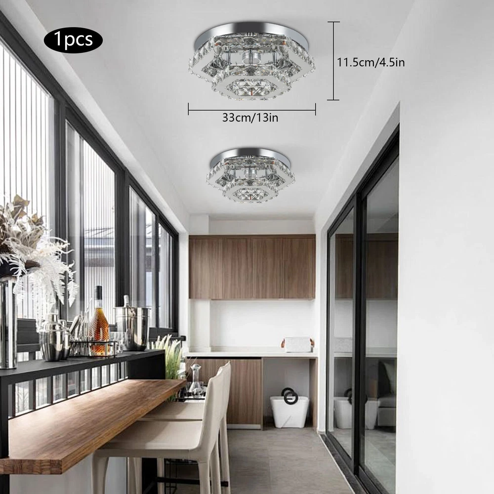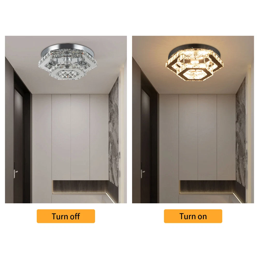 Description This crystal ceiling light combines a sophisticated look and a very modern atmosphere, not only creating a romantic and warm atmosphere for the living room but also creating a high-quality lifestyle. The high-quality material and exquisite workmanship make it durable. Bring it home quickly and add infinite excitement to your home environment! Key Features Build to Last: High-quality stainless steel, crystal, and exquisite laser cutting, and welding processes make the product resistant to high temperature, corrosion, and fading, which reduces the frequency of replacing lamps. Wide Application: The wide voltage (85-265V) allows it to be used in a wider range of applications. Excellent Light Source: The environment-friendly and energy-saving LED light with a high color ind 2 Tiers Crystal Ceiling Light, Modern Ceiling Mount Lamp Fixtures Remote Control Description This crystal ceiling light combines a sophisticated look and a very modern atmosphere, not only creating a romantic and warm atmosphere for the living room but also creating a high-quality lifestyle. The high-quality material and exquisite workmanship make it durable. Bring it home quickly and add infinite excitement to your home environment! Key Features Build to Last: High-quality stainless steel, crystal, and exquisite laser cutting, and welding processes make the product resistant to high temperature, corrosion, and fading, which reduces the frequency of replacing lamps. Wide Application: The wide voltage (85-265V) allows it to be used in a wider range of applications. Excellent Light Source: The environment-friendly and energy-saving LED light with a high color index can effectively avoid glare and stroboscopic, protect your eyes, restore the most authentic color of objects, serve an area of 53.82ft², and save your costs. Stylish Appearance: A hexagonal shape, shining chrome color, smooth lines, and beautiful two-layered crystals make it an unparalleled home décor piece that enhances the elegance of a room and adds a sophisticated aesthetic. Carefully Designed: The infinitely adjustable brightness, adjustable color temperature (3000-6000K), and three different light colors (warm, neutral, and white) can fully meet your usage needs in different scenarios, making it more convenient. Excellent Gift: The beautiful appearance and good practicality make it a great gift for parents, friends, and lovers on birthdays, holidays, and housewarming. Convenient to Use: It is basically assembled for you, and the ceiling light kit includes an English manual containing installation guides, all you need to do is follow the instructions to install the product to the ceiling. Easy Maintenance: A simple construction and smooth surface make this product easy to clean, and you just need to clean it with a dry cloth. Embrace Smart Life: Applied with a remote control, you can easily adjust the light colors and brightness while lying in bed within 16.4ft and don't need to get up and press the switch, bringing more convenience to your life. Protective Packaging: To prevent as much as possible damage to the product during transport, this product is packaged with foams that can effectively resist normal crushing and dropping. Details Stable Chassis : The 11.4" diameter round chassis increases stress area, ensures stable support for the light body, and presents beauty. Sparkling Crystals : Layered crystals have good light transmission and can enhance the visual effect of the entire lamp. Smooth Edges: They can care for your skin during cleaning and installation and also improve the beauty of the product. Application With an application area of 53.82ft², it can be widely used in indoor spaces, such as bedrooms, dining rooms, living rooms, kitchens, dressing rooms, bars, hotels, restaurants, offices, and so on. Specifications Material: Stainless Steel, Crystal Process: Laser Cutting, Welding Color: Chrome Style: Modern Efficiency: E Assembly Required: No Shape: Hexagonal EU Energy Label Efficiency Labeling Class: A++ to E Mounting Type: Ceiling Mount Control Method: Remote Control(Included), Wall Switch(Not Included) Remote Control Battery Type: 2* AAA Batteries (Not Included) Remote Control Distance: 5m/16.4ft Light Source: LED Light Strip( Included) Light Color: White, Warm, Neutral Luminous Flux: About 2200LM Color Temperature: 3000-6000K Brightness: Infinitely Adjustable LED Driver Power: 48W Actual Power: 20W Input: 85-265VAC Output: 36-85VDC 280mA Applicable Area: 5m²/53.82ft² Chassis Size(D*H): 29*2.5cm/11.4*0.9in Total Product Size(L*H): 33*11.5cm/13*4.5in Gross Weight: 3.05kg/6.72lbs Net Weight: 2kg/4.41lbs Package Size: 41*41*15cm/16.14*16.14*5.91in Package Included 1* Crystal Ceiling Light 1* English Manual All Accessories for Assembly Notes Please note that the wall switch (not included) does not control the color temperature. Please check the product size before ordering to make sure it fits your room. Please use the lamp within the applicable voltage range and clean it regularly. Please cut off the power supply when you clean the light. Please wipe with a soft cotton cloth and do not use household cleaning agents. To ensure your safety, we recommend that two people install this lamp together. Please install it by someone with an electrical license if necessary. Please wear electric insulation gloves (not included) and avoid scratching the surface of the lamp when installing. Please make sure that the power supply has been cut off before installation, and conduct a power test before installation. Please read the manual completely before use, and pay particular attention to the safety instructions included. Please allow the slight color difference caused by the shooting light and 1-3 cm error due to manual measurement, and make sure you do not mind before ordering. Payment Delivery details Terms of sales About us Contact us Payment We accept ebay payment 。 Fees such as import duties, taxes are not included in the item price or