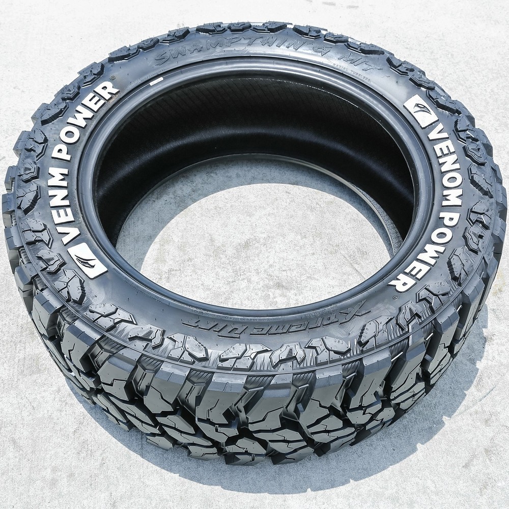 Venom Power Swampthing M/T Xtreme Dirt FEATURES AND BENEFITS Off-road terrain traction Enhanced controllability Damage resistance OVERVIEW The Venom Power Swampthing M/T Xtreme Dirt is a mud terrain, all season tire made for light trucks. This model also has some commercial drive position sizes available. The intended purpose of Mud Terrain tire types is off-road use. They are not designed for regular highway driving. Not all tire sizes are suitable for all vehicle types. Please refer to the item specifications for accurate information about vehicle type fitment for this particular size. Shop Deals Feedback Contact Us Venom Power Swampthing M/T Xtreme Dirt *Tread pattern & sidewall design may vary from pictures Specifications Brand Venom Power Model Swampthing M/T Xtreme Dirt Size 265/70R17 Section Width 265 Aspect Ratio 70 Tire Height N/A Rim Diameter 17 Run Flat No Season All Season Performance Mud Terrain Car Type Light Truck Sidewall RWL: Raised White Letters Load Index 123/120 Speed Rating Q Load Range E (10 Ply) Overall Diameter 31.6 Tread Depth 19/32 UTQG N/A Rebate Available No Seller Notes New SKU N1568917-99-2 Product Description Attention! Due to the size of the tires, Packages might be SEPARATED in the courier facility and not be DELIVERED on the SAME DAY, even though we do ship them together. Tracking information can be checked by logging on to the courier website with the master tracking number you will receive via email. For example, you can receive 3 tires in one day and the 4th one the next day or the day after, or one tire in one day and the second one day after. We understand that this is a big inconvenience for our buyers, however, this is ABSOLUTELY out of our control. Venom Power Swampthing M/T Xtreme Dirt FEATURES AND BENEFITS Off-road terrain traction Enhanced controllability Damage resistance OVERVIEW The Venom Power Swampthing M/T Xtreme Dirt is a mud terrain, all season tire made for light trucks. This model also has some commercial drive position sizes available. This model was designed for exceptional off-road terrain performance. The aggressive footprint, along with the large, staggered blocks and wider grooves, ensures the tire's soft, loose, uneven, and versatile harsh terrain traction. These elements firmly grip the surface, in order to boost its deep mud and loose dirt terrain grip. As a result, the tire enables the model's overall off-road terrain performance throughout the drive. The tread design keeps the footprint clean. They disperse mud and snow from the footprint, preventing them from blocking the surface contact. Exceptional controllability is also guaranteed with this model. The stable footprint with the staggered block pattern enables its consistent surface contact, upgrading steering responsiveness and driving stability. Not only do they upgrade handling, while also optimizing its year-round performance. The deep sipes of the ideal tread blocks improve the tire's cornering and braking ability. They generate friction at the moment of braking, shortening its distance. It also enhances the tire's cornering and maneuvering capability as well. The model promotes damage resistance. The aggressive sidewall pattern and self-cleaning tread design work together to protect the tread area and casing from damage. The footprint eliminates rocks stuck between the tread elements, avoiding stone retention as a result. On the other hand, the sidewalls guard the tire from external damage. Punctures, cuts, and impact damage are avoided in this manner. This combination greatly improves the tire's usability. The Swampthing M/T Xtreme Dirt features a dual sidewall. Vehicle owners can choose which sidewall to showcase on their vehicles. Extreme Terrain tire types are not designed for regular highway driving. They are primarily designed for off-road applications. Not all tire sizes are suitable for all vehicle types. Please refer to the item specifications for accurate information about vehicle type fitment for this particular size. Manufacturers recommend changing tires every 10 years. As long as tires are properly stored before they are sold, the year of their manufacture will not shorten their service life. RIM NOT INCLUDED Shipping FAST AND FREE SHIPPING FREE SHIPPING within the lower 48 contiguous States. All orders are shipped with FedEx Ground/Home Delivery. FedEx requires a physical address. We cannot ship to PO BOX, APO, FPO, HI, AK, PR, GU or VI addresses. All Orders placed before 12PM EST (Eastern Standard Time) will be shipped out the SAME DAY. FedEx does not pick up orders on weekends and national holidays. The average delivery time ranges between 1-6 business days. Signature Required delivery will not be processed automatically. Please contact us directly to request Signature Required delivery. Special delivery instructions cannot be provided as FedEx is not able to process them. For Buyers from Missouri or if the order is shipped to Missouri a 4.225% MO sales tax will apply. Sales tax for products that are being shipped to other states is collected and remitted by eBay. For more information see article "Taxes and import charges" Tracking information is made available to the Buyer after an Order is shipped. As the supply chain network is still disrupted due to the current worldwide situation, we're doing everything within our power to ensure orders are shipped as quickly as possible. However, despite our best efforts, shipping and delivery times may change unexpectedly. Please check your Order Status for the most current estimate of the shipping time. Thank you for your patience and understanding. RETURNS EASY NO HASSLE NINETY (90) DAY CUSTOMER SATISFACTION 90 DAYS: We accept Returns within a 90-day period! FULL REFUND: No Restocking Fee will be applied and a Full Refund will be provided if the Item is returned in unused condition. FREE RETURN: Unsatisfied for any reason or just changed your mind? Contact us for help and a hassle-free formal Free Return!