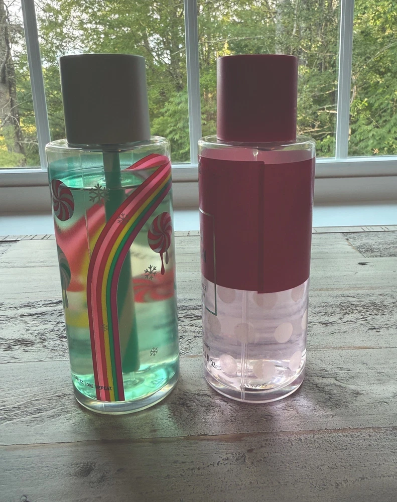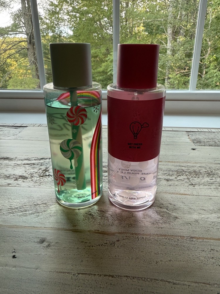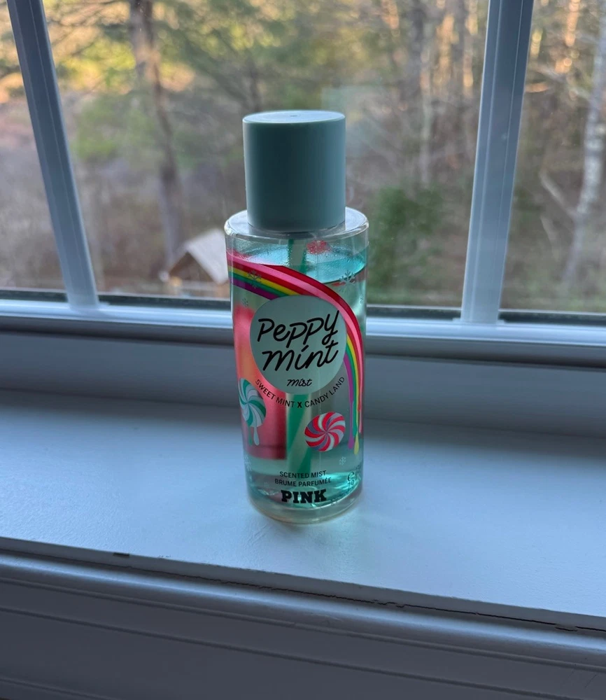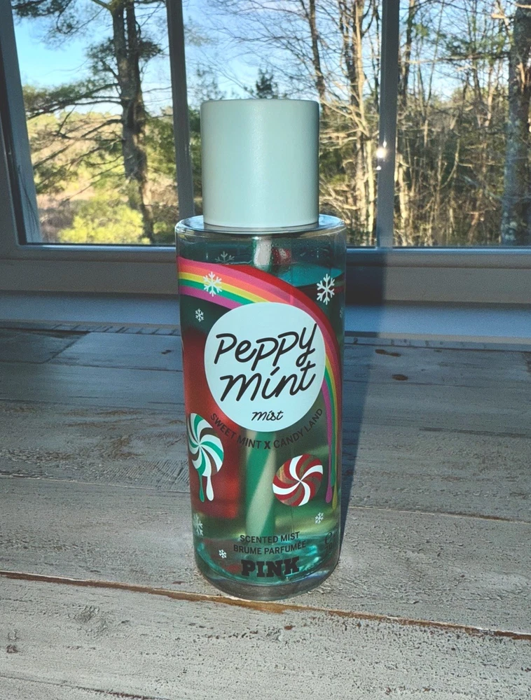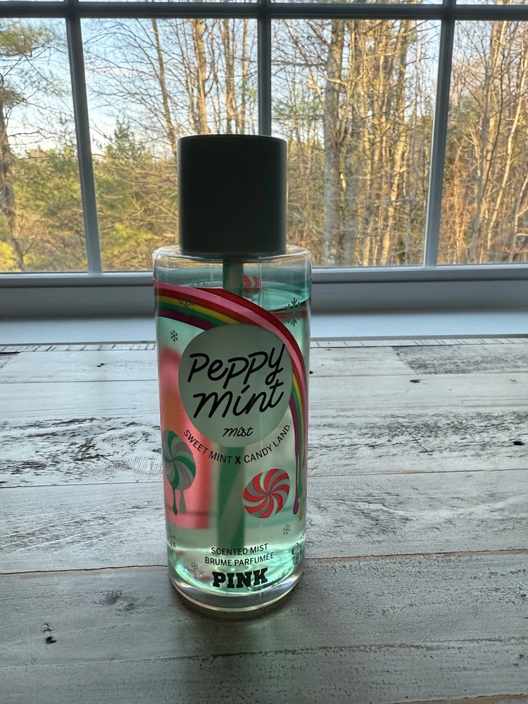 Experience the refreshing essence of sweet mint with Victoria's Secret Pink Peppy Mint Fragrance Mist. This 7.9 oz spray brings to mind the delightful taste of candyland, leaving a trail of cool, sweet scent behind. Its regular size makes it a perfect addition to your perfume collection or a thoughtful gift for someone special. Crafted for those who appreciate a hint of playfulness in their fragrances, this mist boasts a unique formulation that evaporates slowly, ensuring your senses are tantalized by its cool, minty aroma for longer. The iconic Victoria's Secret Pink brand promises a quality scent that's both exotic and alluring. Fresh and clean is more than 2/3 full and mint peppy it’s easier to tell how full it is from the photos but it’s almost full! Both great scents!