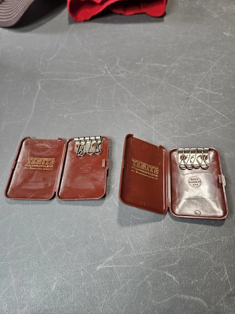2 Vintage Key Holders Tenite Eastman Plastic Good Old Ones Key Rings
