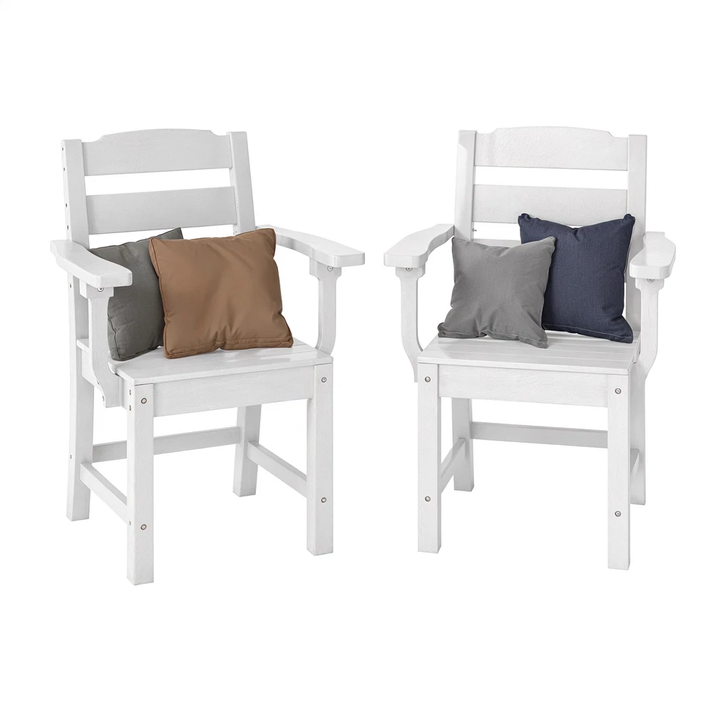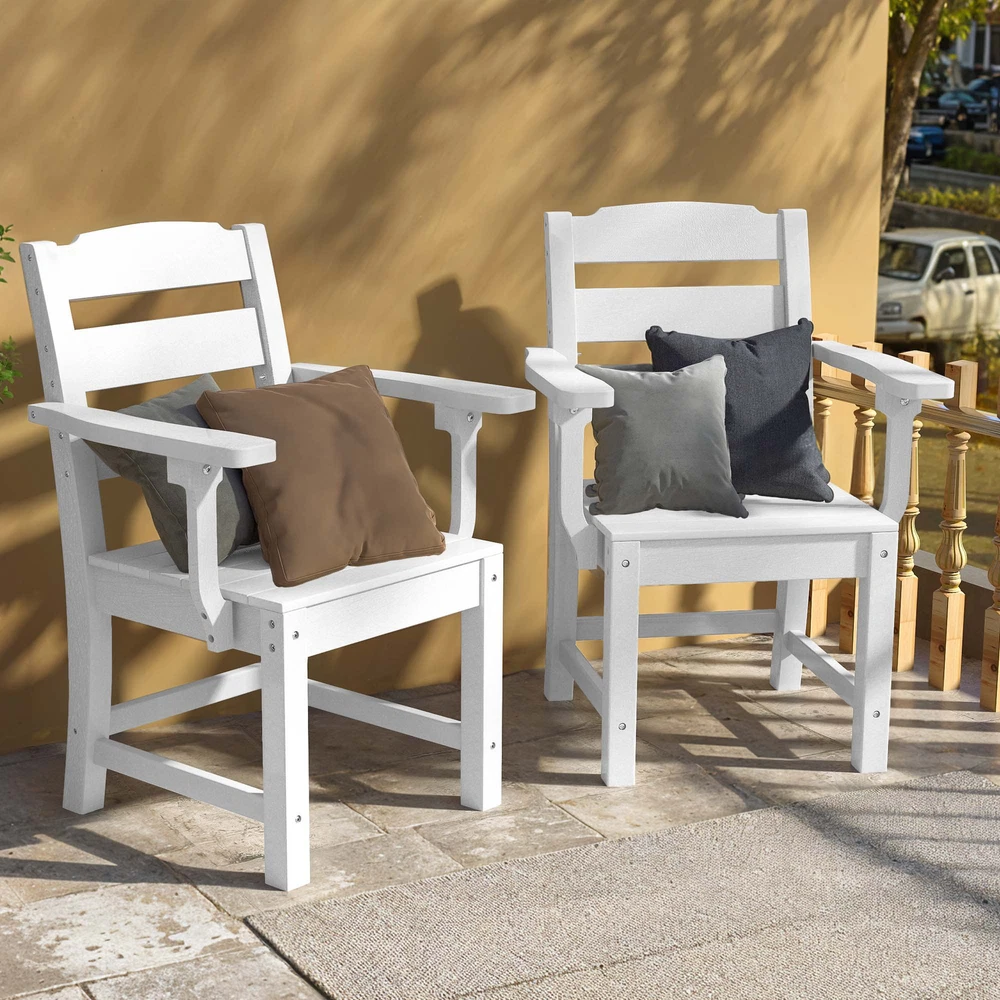 2 White Outdoor Patio Chairs with Armrests & High Backrests