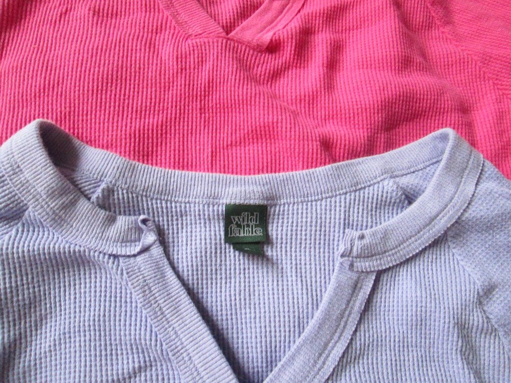 2 Wild Fable XL Long Sleeved Thermal Crop Top (Pink & Lavendar Purple) w/ V Neck
