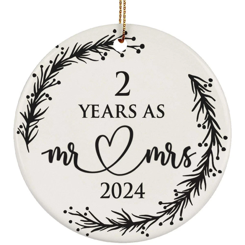 2 Years As Mr Mrs 2nd Weeding Anniversary Ornament Flower Wreath Xmas Gifts