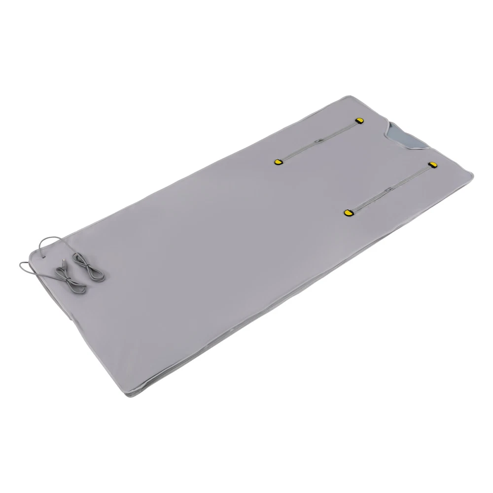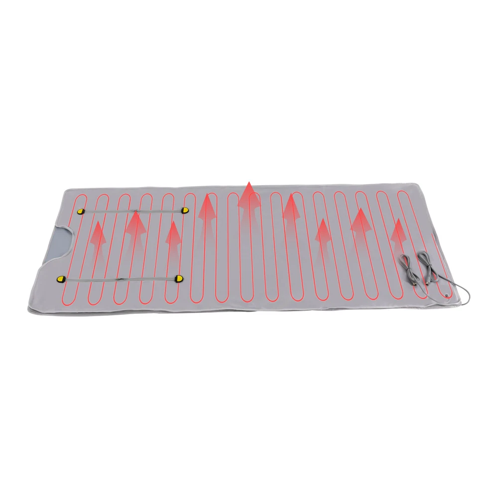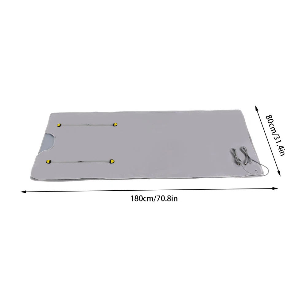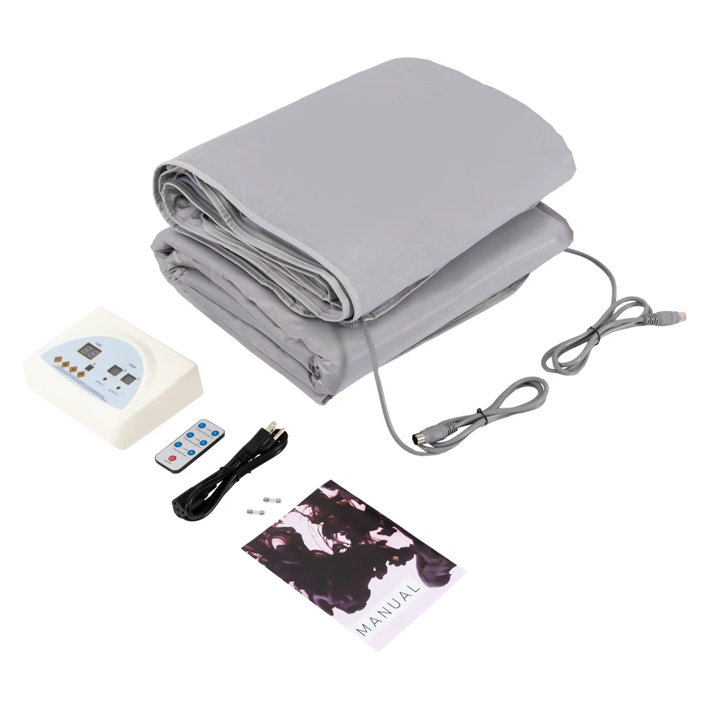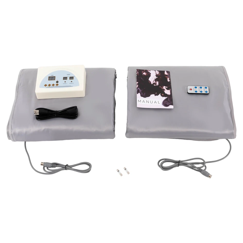 Description Do you have no time to go to the gym because of work and childcare? Do you want to exercise at home but there is no place to put fitness equipment? Do you go to the ware gym after work but are too tired to stick to it for a long time? If the answer is yes. Then you need this portable far infrared sauna blanket! It can drain dampness, acidity, silt, and cold for you, so you can easily enjoy a comfortable life at home. Key Features Timable: The product has a timer function, you just need to set the time within 15-60 minutes and go about your business with confidence. You don't have to worry about falling asleep during the sauna and causing the product to overheat. Temperature Control by Zone: The temperature of the back and chest of the product can be separately controlled fro 2 Zone Control Far Infrared Sauna Blanket Heater Slimming Weight Loss Detox Spa Description Do you have no time to go to the gym because of work and childcare? Do you want to exercise at home but there is no place to put fitness equipment? Do you go to the ware gym after work but are too tired to stick to it for a long time? If the answer is yes. Then you need this portable far infrared sauna blanket! It can drain dampness, acidity, silt, and cold for you, so you can easily enjoy a comfortable life at home. Key Features ⭐ Timable: The product has a timer function, you just need to set the time within 15-60 minutes and go about your business with confidence. You don't have to worry about falling asleep during the sauna and causing the product to overheat. ⭐ Temperature Control by Zone: The temperature of the back and chest of the product can be separately controlled from 95 to 176 ° F. You can adjust them to the temperature you feel comfortable. ⭐ Easy to Store: The exterior of the product is made of oxford fabric, which is easy to fold and does not wear out easily. When you need to store it, just fold it up like clothes, it will not take up too much of your storage space. ⭐ Easy to Operate: The product can be adjusted by a remote control which makes it more convenient for personal use, and you can control the temperature and time even if you are lying down. ⭐ High Safety: The product adopts an overload protection switch. When the voltage is too high, too low, overload and leakage, the product will automatically stop, thus playing a safety protection role. And the product has CE and UL964 certifications, which are safe, stable, and reliable. ⭐ SPA at Home: The portable far infrared sauna blanket is perfect for enjoying a full-body sauna detox at home. It comes with everything you need to set it up and use it immediately. Not only will it help you save money, but it will also allow you to enjoy time with your family. ⭐ Beneficial to Health: Infrared sauna blanket can release 1-14 pm far infrared rays, thus resonating with the same frequency cells in the body, which can speed up blood circulation and metabolism. It can effectively help you improve skin condition, improve sleep, relieve joint pain/muscle spasms, relax muscles, etc. ⭐ Skin-friendly Material: Our internal material is fiber cloth, and the external material is Oxford cloth material. These two safe soft materials have flexible stretching ability even in various sleeping positions. ⭐ 360-degree Heat Circulation: Its delicate and tight wiring and sewing, as well as the enclosed space formed by a smooth zipper, realize a 360 degree thermal cycle, allowing heat to cover every part of your body to effectively help you discharge acid, moisture, silt and cold. ⭐ Relax Your Hands: The upgraded sauna blanket is designed with two holes for reaching out to drink water, read a magazine, watch a movie or make a phone call while enjoying the sauna. Details Comprehensive Battery Configuration: The smart remote control contains 3v removable button batteries, so you don't have to configure batteries separately for it. Extra-long Power Cord: The power cord connecting the sauna blanket is 63 inches, allowing you to use it more freely and conveniently with fewer distance restrictions. High-quality Zipper: The product is made of a high-quality zipper, which makes your operation mo re effortless and silky smooth to easily enjoy the health-boosting experience. Application This product is suitable for use in beauty salons, spas, relaxation rooms, homes, etc. The size of the product (70.8*31.4inches) is suitable for most customers. Specification Material: Oxford Fabric, Fiber Cloth with Adhesive Voltage: 110V Plug: US Standard Power: 650W Color: Silver Timing Range: 15-60 minutes Temperature: 35-80℃/ 95-176℉ Radiation Infrared Amount: 1-14 pm Sauna Blanket Power Cord Length: 160cm/63in Gross Weight: 6.2kg/ 13.67lbs Net Weight: 6kg/ 13.23lbs Product Size: 180*80cm/ 70.8*31.4 in Package Size: 45*35*20cm/ 17.72*13.78*7.87in How to Use Unfold the sauna blanket and connect its two wires to the output of the main unit. Have the client lie on the blanket and begin the operation. Turning on the power and turning on the switch. Press the button Set, select the Time option and set the machine's operating time. Press the set button, when Temp 1 flashes, press the button time up and button time down to set the output temperature of output 1. The value can be saved automatically after setting the machine. Press the set button again, when Temp 2 flashes, please press the button time up and button time down to set the output 2 output temperature, the value can be saved automatically after setting the machine. After setting the working time and output temperature, please press the "S/P" button to start the machine. After use, turn off the machine and cut off the power. Package Included 1 * Sauna Blanket 1 * Set Mainframe 1 * Remote Control 1 * Power Wire 2 * Fuse 1 * English Manual Notes It is recommended to drink more warm water before use, you can apply your favorite essential oils. Turn on the machine and preheat for 5 minutes, then personnel enters. It is rec