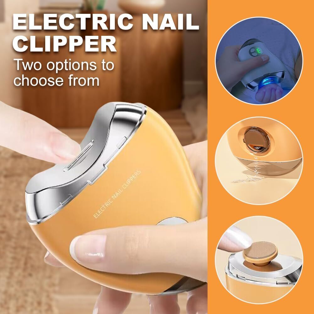2 in 1 Electric Polishing Automatic Nail Clippers,2024 New Electric Nail Clipper Electric Polishing Automatic Nail Clippers ] Our electric nail clipper combines cutting and polishing into one simple tool, eliminating the need for extra files and saving you time. [ Automatic Nail Clipper ] Say goodbye to scattered nail chips! The built-in chip reservoir collects clippings as you trim, keeping your floors, sofas, and carpets clean and tidy. [ 3 Adjustable Speeds ] Our electric nail trimmer is designed with anti-involvement technology, making it ideal for infants, children, the elderly, and anyone with limited dexterity. Low speed for babies, medium speed for adults, and high speed for the elderly. [ Safe & Precise Cutting ] Designed with rounded edges for safety, it's perfect for even the most delicate nails. Enjoy professional-level precision from the comfort of your home! [ Ultra-Quiet & Peaceful ] Low-noise operation ensures a peaceful experience—perfect for trimming your child’s nails during nap time without disturbing their sleep. Package Include: 1 x nail clipper