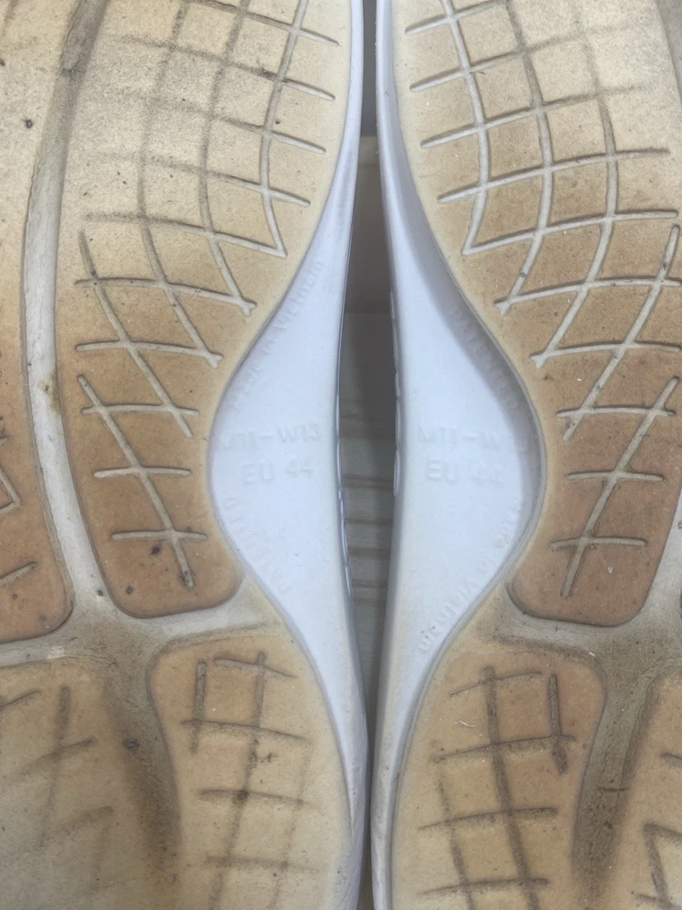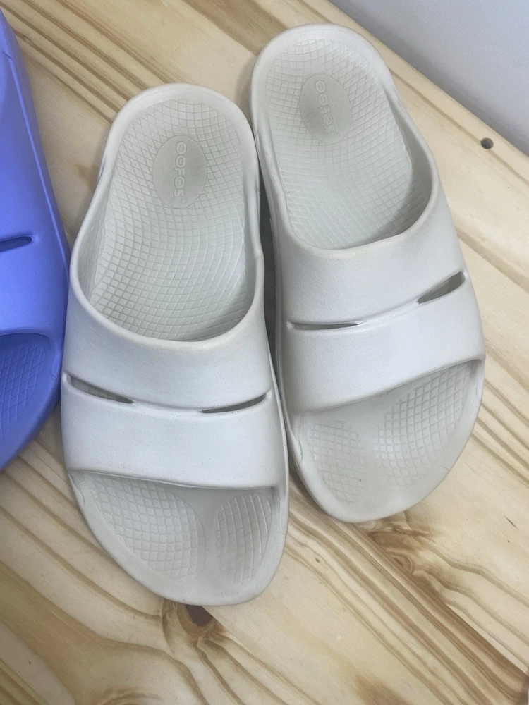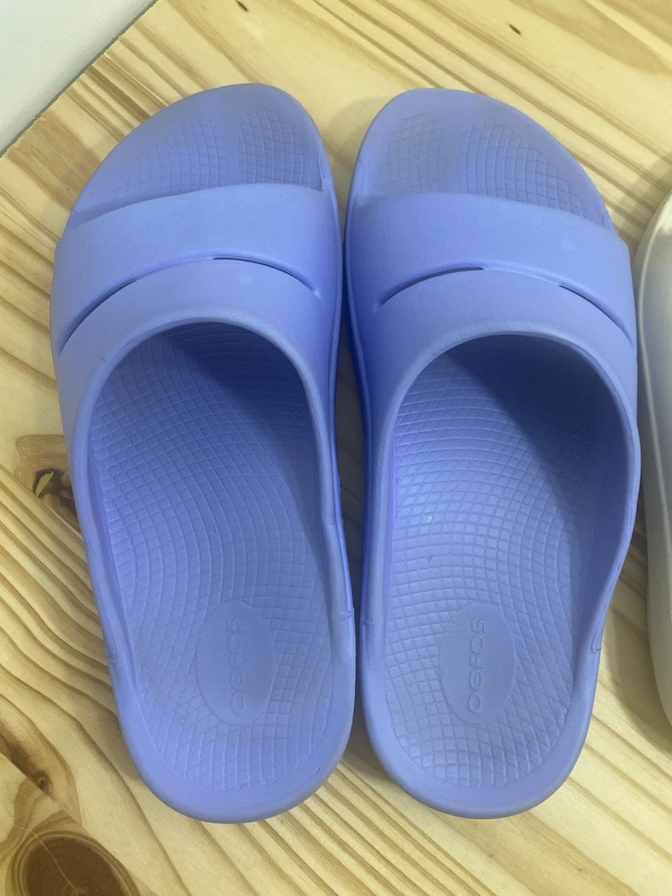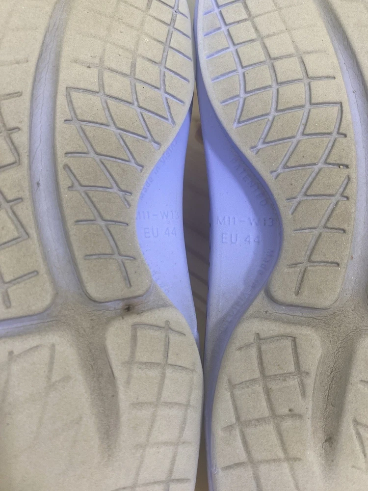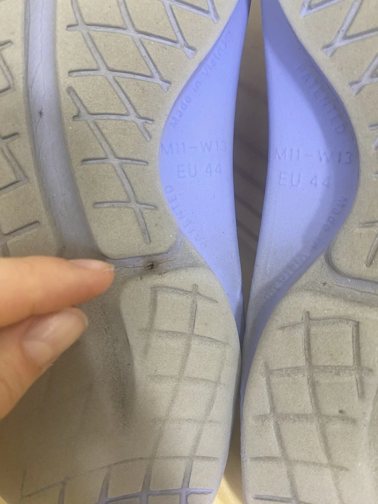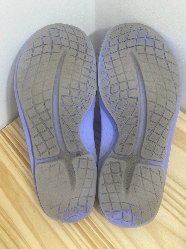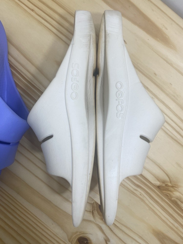 You get both pairs! Both are preowned, size men’s 11 / women’s 13 One pair is beige/off white the other is light purple The purple pair has a spot where a thorn was removed from the bottom and they have small cuts and scratches from light use but it does not affect look, feel or function. They are VERY comfy slides!