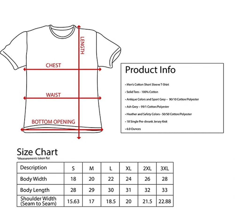 --------- PRODUCT ---------- Cotton graphic T-shirt, custom t shirts, custom t shirt printing Lightweight, extremely comfortable and durable 100% Cotton High Quality Colors: Multicolore Size: S, M, L, XL, 2XL, 3XL We have a size chart in the picture, please refer to and choose the right product. ------SHIPPING-------- Every order that we receive is made at the time that we receive it which means it is custom made for you! Processing time: 2-3 business days Shipping time: 5-7 business days Thank you for choosing our products. Please feel free to message us if you have questions or concerns. ------CUSTOMER SATISFACTION-------- We try our very best to make sure every customer is completely satisfied. If there's a problem, message us! We're happy to help. If you like other colors and sizes please contact with us. We have color white, blue, green, ice grey, red, navy, charcoal, sport grey. Please explore our gallery dept t shirt to find the product you want. ------- Thank You!--------