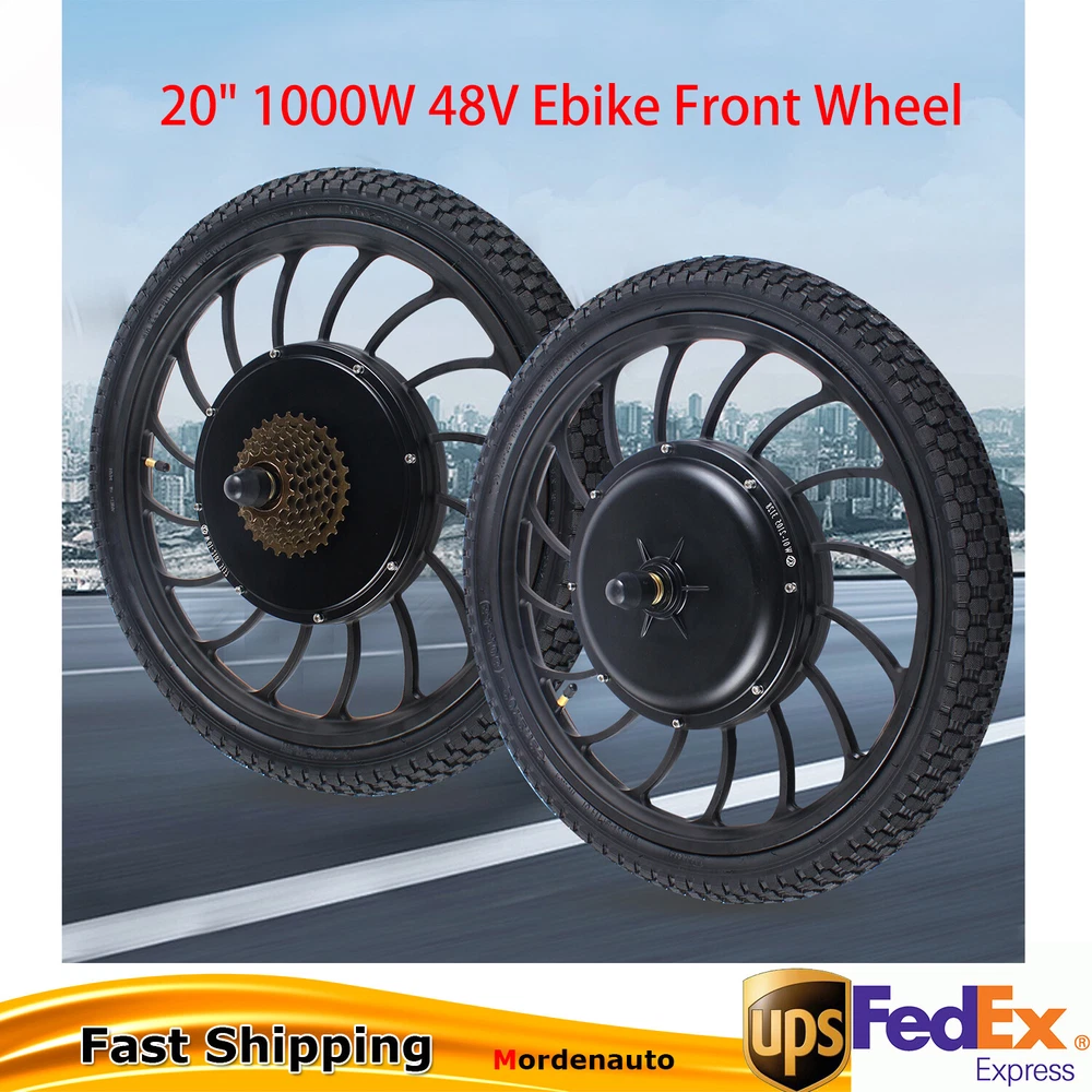 20" 1000W 48V Ebike Front Wheel Electric Bicycle Motor Conversion Kit Motor Hub 20" 48V 1000W Ebike Front Wheel Electric Bicycle Motor Conversion Kit Motor Hub Description Description: Quiet and Reliable Brushless Gearless Hub Motor Front Integral Motorized Wheel (hub motor wheel) with tire and tube 20'' rear motor wheel with 7-speed freewheel Hub Width: 100mm front or 135mm rear hub motor Motor Specification: High Motor Efficiency: max 88.7% (Save Power) Torque: max torque 35 N.m. RPM: max 420 Speed: 0-40km/h Support standard 6-hole type disc brake Front Integral Wheel Weight: 8.5kg Available Wheel Tire Size: 20''x2.125 Package: 1* Motor Wheel ( Front or Rear ) Our Gauranteen: 1. We Provide you with the verious ways of shipping,you can choose the best way to ship to you. 2. If the items unfortunately don't work,or work badly,we have our engineers to serve you the professional help,otherwise we have many convinient ways to return the items.Plz pay attention to our Returning policy. 3. If you don't receive our items,plz feel free to contact US,we will deal it as soon as possible. 4. If you meet any other questions,Plz feel free to contact US. 5. For all problems,We will deal it in 1 day noramally(except Vacational days),not more than 3 days. * Feature * Creative Design,Durable Material,Beautiful Appearance Feature 1 Easy installation,Convenient Use,Easy Operation Note: Do not send to Brazil Bundle Description: No shipping notice Can not ship to Puerto Rico,Alaska/Hawaii Item location: CA /NJ /Austell Transportation does not include: canarias shipping notice: Can not ship to Puerto Rico,Alaska/Hawaii Brand Unbranded Voltage 48 V Part Type Wheel Component Color Black MPN Does not apply High Motor Efficiency max 88.7% (Save Power) Torque max torque 35 N.m. RPM max 420 Speed 0-40km/h Weight 8.5kg Available Wheel Tire Size 20''x2.125 Compatible Bike Type Universal Delivery details Shipping: 2-9 working days to: USA Terms of sales We maintain high standards of excellence and strive for hundred percent customer satisfaction. Feedback is very important to us. We hope that you contact us immediately before you give neutral or negative feedback, so that we can address your concerns. It is impossible to address issues if we do not know about them! About us Your satis faction is our ultimate goal. We work hard to earn your trust and future business. Our certified technicians have tested each item before shipping. The unit comes with 1 year limited warranty on all manufacturing defects. a) If you receive a defective item, you may return it or ask for a discount. Please contact us within 14 days after you receive the package. b) What you returned must be intact and in its original packaging as re? u. Customer is responsible for shipping costs of the returned item. c) We will cover the cost of shipping back t with the shipping rate indicated in the registration page. We will send you a new unit or refund the full payment you paid. Thank you. Contact us Business Hour Business Hour: Monday To Friday: 8:30 AM to 5:00 PM (Beijing China time) Due to time zones, our reply to your questions may not be immediately. But within above working time, we will reply your email within 24 hours. If it's non-workdays, please kindly be patient and wait till Monday. Please contact us with ebay message. Please feel free to contact us if you have any questions. : Monday To Friday: 8:30 AM to 5:00 PM (Beijing China time) Due to time zones, our reply to your questions may not be immediately. But within above working time, we will reply your email within 24 hours. If it's non-workdays, please kindly be patient and wait till Monday. Please contact us with ebay message. Please feel free to contact us if you have any questions. Payment Delivery details Terms of sales About us Contact us Payment We accept ebay payment 。 Fees such as import duties, taxes are not included in the item price or shipping costs. These charges are the buyer's responsibility. Delivery details Shipping: 2-9 working days to: USA Terms of sales We maintain high standards of excellence and strive for hundred percent customer satisfaction. Feedback is very important to us. We hope that you contact us immediately before you give neutral or negative feedback, so that we can address your concerns. It is impossible to address issues if we do not know about them! About us Your satis faction is our ultimate goal. We work hard to earn your trust and future business. Our certified technicians have tested each item before shipping. The unit comes with 1 year limited warranty on all manufacturing defects. a) If you receive a defective item, you may return it or ask for a discount. Please contact us within 14 days after you receive the package. b) What you returned must be intact and in its original packaging as re? u. Customer is responsible for shipping costs of the returned item. c) We will cover the cost of shipping back t with the shipping rate indicated in the registration page. We will send you a new unit or refund the full payment you paid. Thank you. Contact us Business Hour Business Hour: Monday To Friday: 8:30 AM to 5:00 PM (Beijing China time) Due to time zones, our reply to your questions may not be immediately. But within above working time, we will reply your email within 24 hours. If it's non-workdays, please kindly be patient and wait till Monday. Please contact us with ebay message. Please feel free to contact us if you have any questions. Monday To Friday: 8:30 AM to 5:00 PM (Beijing China time) Due to time zones, our reply to your questions may not be immediately. But within above working time, we will reply your email within 24 hours. If it's non-workdays, please kindly be patient and wait till Monday. Please contact us with ebay message. Please feel free to contact us if you have any questions.