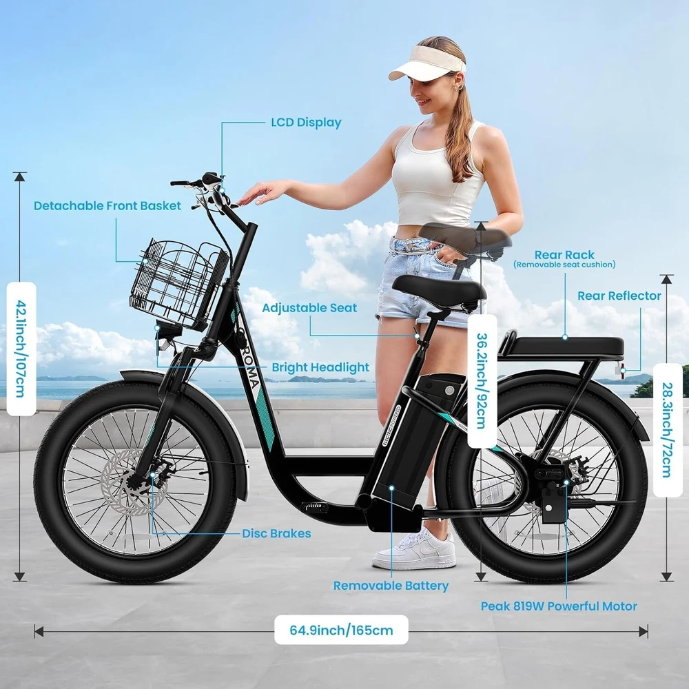 Product Description 20" X 3" Adjustable Caroma Electric Scooter With 2 Seats for Adults & Teens About this item 【20" X 3" Super Wide Off-Road Tires】: The thick and sturdy 20" tires of the adult electric scooters absorb most shock, offering a comfortable riding experience. Combined with a 3-inch width, the tire's stability is maximized, making it suitable for all road conditions and weather conditions. 【Convenient & Durable Two-Seated E-Scooter】: This electric scooter uses an integrated metal frame, which is sturdy and durable and can withstand a maximum weight of 300lbs. With a rear seat that can bear a maximum weight of 110lbs, it greatly improves the scooter's carrying capacity (the rear seat cushion is removable). 【Peak 1200W Motor & 500Wh Battery】: Caroma K5 electric scooter with seat is equipped with a 750W(Peak 1200W) brushless hub motor and 500Wh long lasting battery, so that it can reach 20MPH top speed and travel up to 30 miles on a single charge.The e-scooter can run smoothly even on a 20° road. 【LCD Display & Safe to Ride】: The LCD monitor shows the battery level of the e scooter, so you can get a clear picture of your riding. The effective front and rear disc brake on the e-scooters provide excellent stability and control. The high-brightness headlight and rear brake light keep your riding safe at night.