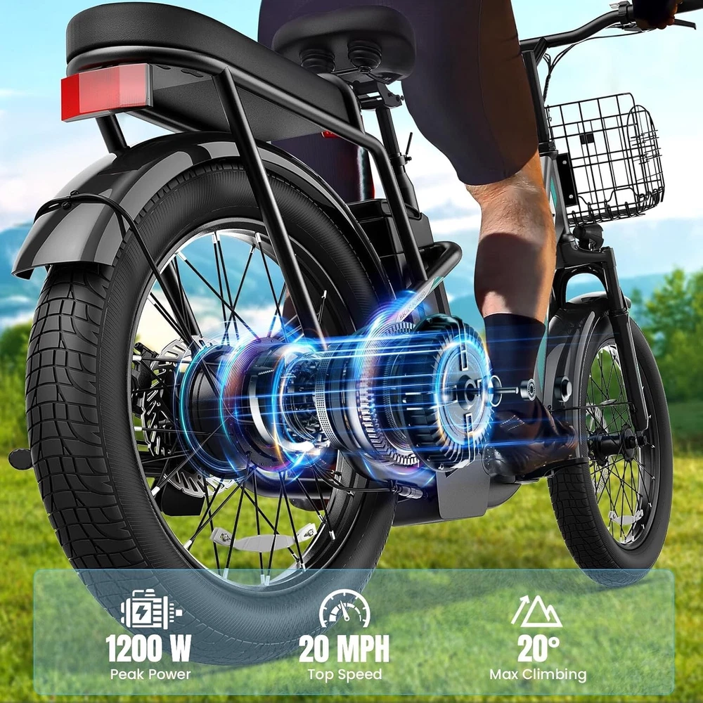 20" Fat Tire Electric Scooter with Seat & Basket Peak 1200W Commuter E Scooter~
