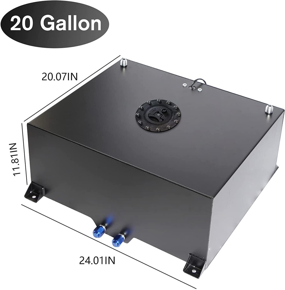 20 Gallon Black Aluminum Fuel Cell Gas Tank+Cap+Level Sender+Fuel Line Kit 20 Gallon (80L) Aluminum Racing Fuel Cell + 6AN Braided Fuel Line Kit | Universal for Hot Rods/Race Cars/Trucks/SUVs High-Grade Aluminum Construction | Anti-Slosh Foam | 0-90 Ohm Fuel Sender | 12ft 6AN Braided Hose + Fittings | Quick-Release Cap Complete high-capacity racing fuel system kit engineered for performance builds, featuring a 20-gallon aluminum fuel cell and full 6AN fuel line setup – delivers reliable, high-flow fuel delivery and eliminates fuel starvation for aggressive street/track driving. 1. Core Specifications & Compatibility 🚨 Universal Fitment ✅ Compatible Vehicles : Hot rods, street racing cars, drift cars, track cars, trucks, SUVs, and custom performance builds ✅ Critical Fit Note : Confirm your vehicle has sufficient space for the fuel cell and matching mounting tab spacing ( verify dimension details below ) before purchase 🚨 20 Gallon Fuel Cell Key Specs Parameter Details Condition 100% Brand New Material High-Grade Aluminum (lightweight, sturdy, rust/corrosion-resistant) Capacity 20 Gallon / 80L (large-volume for extended run time) Primary Dimensions 24" (L) × 19.75" (W) × 10" (H) Alternate Dimensions 19.7" (L) × 17.5" (W) × 10" (H) (verify fit for your build) Mounting Tabs 21.25" (L) × 21.75" (W) / 18" (L) × 19.25" (W) center-to-center Sump Size 6" × 6" × 2" Deep (ensures constant fuel pickup) Outlets/Vents Dual -10 AN Fuel Outlets; Dual -10 AN Vent Outlets (top-mounted) Fuel Sender Built-in 0-90 Ohm Level Sender (compatible with most aftermarket fuel gauges) Core Features Anti-slosh foam included, Quick-Release Fuel Cap Critical Fluid Note NOT for use with alcohol, methanol, or water (pump gas/diesel only) 🚨 6AN Braided Fuel Line Kit Complete Specs Parameter Details Hose Length 12ft Silver Nylon + Stainless Steel Braided Hose Hose Core CPE Synthetic Rubber (flexible, high-flow) Fitting Material T6061 Aluminum Alloy (high strength, durable) Fitting Inclusions 2×90° 6AN adapters + 2×45° 6AN adapters + 2×Straight 6AN adapters + 2×6AN to 10AN fuel tank adapters (8pcs total) Compatibility Adapts 6AN line to fuel cell’s 10AN outlets (seamless system integration) Finish Silver braided hose (racing-style appearance) 2. Complete Package Contents Aluminum 20 Gallon Fuel Cell (with 0-90 Ohm level sender + quick-release fuel cap) Integrated Anti-Slosh Foam (pre-installed in fuel cell) 12ft Silver Nylon/Stainless Steel Braided 6AN Fuel Line 8pcs 6AN Aluminum Fittings (2×90° + 2×45° + 2×Straight + 2×6AN-to-10AN tank adapters) 3. Key Features & Performance Advantages 🔹 20-Gallon Large-Capacity Fuel Cell 80L fuel storage : Ideal for endurance track days, long-distance street drives, or large custom builds – drastically reduces refueling stops and maximizes on-track/on-road time. Anti-slosh foam core : Eliminates fuel movement during hard cornering, drifting, acceleration/braking; prevents vehicle imbalance and fuel starvation (avoids engine misfires/stalls). Also reduces fuel vapor explosion risk in empty tank space. Deep 6×6×2" sump : Ensures fuel pickup stays fully submerged even in extreme driving conditions – consistent fuel delivery to high-performance engines. 🔹 Durable Aluminum Construction High-grade aluminum tank : Outperforms plastic fuel tanks in strength and longevity; resists impacts, vibration, and harsh under-hood/rear-mounted conditions. Rust/corrosion-resistant : Maintains clean fuel quality for long-term use; lightweight design preserves vehicle performance/handling (no excess weight). Quick-release fuel cap : Enables fast, hassle-free refueling – critical for competitive racing and quick pit stops. 🔹 Complete 6AN Fuel Line Kit 12ft braided hose : Nylon + stainless steel outer braid for abrasion/heat resistance; CPE inner core for high-flow, leak-proof fuel delivery. Aluminum alloy fittings : CNC-machined T6061 aluminum for high strength; multi-angle adapters (90°/45°/straight) for flexible fuel line routing in tight engine bays/chassis. 6AN-to-10AN adapters : Seamlessly connect the 6AN braided line to the fuel cell’s 10AN outlets – no additional adapters needed for full system integration. 🔹 Reliable Fuel Level Monitoring Built-in 0-90 Ohm sender : Works with most aftermarket fuel gauges for accurate, real-time fuel level readings – no guesswork on remaining fuel for races/drives. 4. Important Installation & Care Notes Professional Installation Recommended : No installation instructions included; proper mounting, fuel line routing, and leak testing are critical for safety (race fuel system expertise advised). Fit Verification : Double-check fuel cell dimensions (24"L×19.75"W×10"H / 19.7"L×17.5"W×10"H) and mounting tab spacing against your vehicle’s intended mounting area to avoid clearance issues. Fluid Restriction : Do not use with alcohol, methanol, or water – these fluids will damage the fuel cell and fuel line components. For pump gas/diesel use only. Foam Maintenance : Inspect the anti-slosh foam regularly for deterioration; replace if damaged to maintain fuel delivery performance and safety. Tolerance Note : Minor 1-3mm dimensional deviation may exist due to manual measurement (does not affect fit/function). 5. After-Sales Support Order Cancellation : Contact us ASAP – we cancel unshipped orders; for shipped orders, refuse the package and await return processing. Fit/Defect Issues : Reach out directly for prompt assistance with replacements or solutions. Quality Guarantee : Manufactured to meet performance standards with design improvements for enhanced reliability.