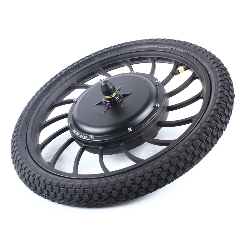 Motor Specification: High Motor Efficiency: max 88.7% (Save Power) Torque: max torque 35 N.m. RPM: max 420 Speed: 0-40km/h Support standard 6-hole type disc brake Front Integral Wheel Weight:8.5kg Available Wheel Tire Size: 20''x2.125 20 inch Hub Motor Ebike Front Wheel Electric Bicycle Motor Conversion Kit 48 V Description Description: Quiet and Reliable Brushless Gearless Hub Motor Front Integral Motorized Wheel (hub motor wheel) with tire and tube Hub Width: 100mm front Motor Specification: High Motor Efficiency: max 88.7% (Save Power) Torque: max torque 35 N.m. RPM: max 420 Speed: 0-40km/h Support standard 6-hole type disc brake Front Integral Wheel Weight:8.5kg Available Wheel Tire Size: 20''x2.125 Package: 1*Front wheel Our Gauranteen: 1. We Provide you with the verious ways of shipping,you can choose the best way to ship to you. 2. If the items unfortunately don't work,or work badly,we have our engineers to serve you the professional help,otherwise we have many convinient ways to return the items.Plz pay attention to our Returning policy. 3. If you don't receive our items,plz feel free to contact US,we will deal it as soon as possible. 4. If you meet any other questions,Plz feel free to contact US. Payment Delivery details Terms of sales About us Contact us Payment We accept ebay payment 。 Fees such as import duties, taxes are not included in the item price or shipping costs. These charges are the buyer's responsibility. Delivery details Shipping: 2-9 working days to: USA Terms of sales We maintain high standards of excellence and strive for hundred percent customer satisfaction. Feedback is very important to us. We hope that you contact us immediately before you give neutral or negative feedback, so that we can address your concerns. It is impossible to address issues if we do not know about them! About us Your satis faction is our ultimate goal. We work hard to earn your trust and future business. Our certified technicians have tested each item before shipping. The unit comes with 1 year limited warranty on all manufacturing defects. a) If you receive a defective item, you may return it or ask for a discount. Please contact us within 14 days after you receive the package. b) What you returned must be intact and in its original packaging as re? u. Customer is responsible for shipping costs of the returned item. c) We will cover the cost of shipping back t with the shipping rate indicated in the registration page. We will send you a new unit or refund the full payment you paid. Thank you. Contact us Business Hour Business Hour: Monday To Friday: 8:30 AM to 5:00 PM (Beijing China time) Due to time zones, our reply to your questions may not be immediately. But within above working time, we will reply your email within 24 hours. If it's non-workdays, please kindly be patient and wait till Monday. Please contact us with ebay message. Please feel free to contact us if you have any questions. Monday To Friday: 8:30 AM to 5:00 PM (Beijing China time) Due to time zones, our reply to your questions may not be immediately. But within above working time, we will reply your email within 24 hours. If it's non-workdays, please kindly be patient and wait till Monday. Please contact us with ebay message. Please feel free to contact us if you have any questions. 1.Feature* Unique Appearance,Great Durability 2.Feature* Compact Design,Convenient Use Brand Unbranded Part Type Wheel Component MPN Does not apply Color Black Voltage 48 V Compatible Brand Does not apply Speed 0-40km/h Weight 8.5kg Compatible Bike Type N/A Package List 1* Motor Wheel ( Front or Rear ) High Motor Efficiency max 88.7% (Save Power) Torque max torque 35 N.m. RPM max 420 Available Wheel Tire Size 20''x2.125