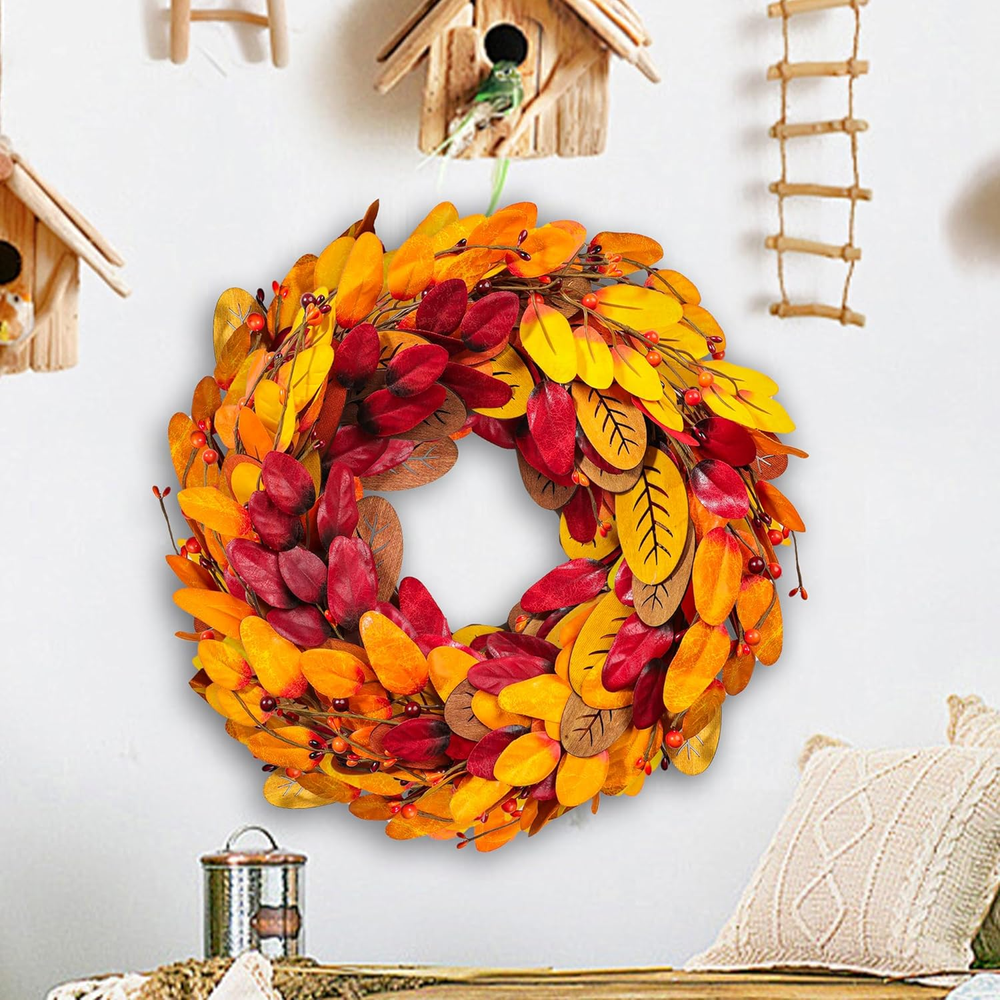 【Artificial Fall Wreath】: Get ready to be amazed by the richness and beauty of this fall wreath! Except there's a welcome wooden sign, our autumn wreath consists of masses of plump berries & maple leaf & Pine Cones. Vivid and full, this fall wreath can bring a strong autumn atmosphere to your home. 【High-Quality】: As a high-quality wreath, this autumn wreath is carefully arranged by professional florists, and the entire production process is completely handmade. Each detail is meticulously designed to provide a lifelike touch, from the intricate textures to the rich accessories that adorn it. With a visually striking appearance, this fall wreath is a true masterpiece that will elevate your autumn decor to new heights. 【Perfect Size】The harvest wreath is 20 inches For safe shipping and instant storage, we package it in a small hardbox. As an adjustable fall wreath,you can bend the branches of it to achieve the desired effect and fully unfold it to reach its actual size you'll have a beautiful fall wreath! 【Versatile Decor】This autumn wreath measures 20 inch/45 cm. Front door, indoor, outdoor, wall, window, fireplace or above the Mantel in your home as a warm inviting welcome sign to your family and friends, which is durable and always maintains vitality. Compared to real flowers, our autumn wreath will give you longer companionship and lasting happiness. 【Autumn Vibe】This amazing flower wreath could be used during autumn Harvest Day and Thanksgiving Day to add a little holiday touch and warmth to your home. Eye-catching design makes your decorations stand out in the neighborhood, If you have any questions about our products, please feel free to and we will definitely give you a perfect answer. Product Description 20" Fall Wreath Fall harvest wreath, halloween wreath, fall decoration, thanksgiving decoration. Rich Autumn Vibe With a visually striking appearance, this fall wreath is a true masterpiece that will elevate your autumn decor to new heights. Wide Range of Uses No assemble needed. Easy to hang on wall, front door, fireplace, a living room mantel, porch, window,etc.