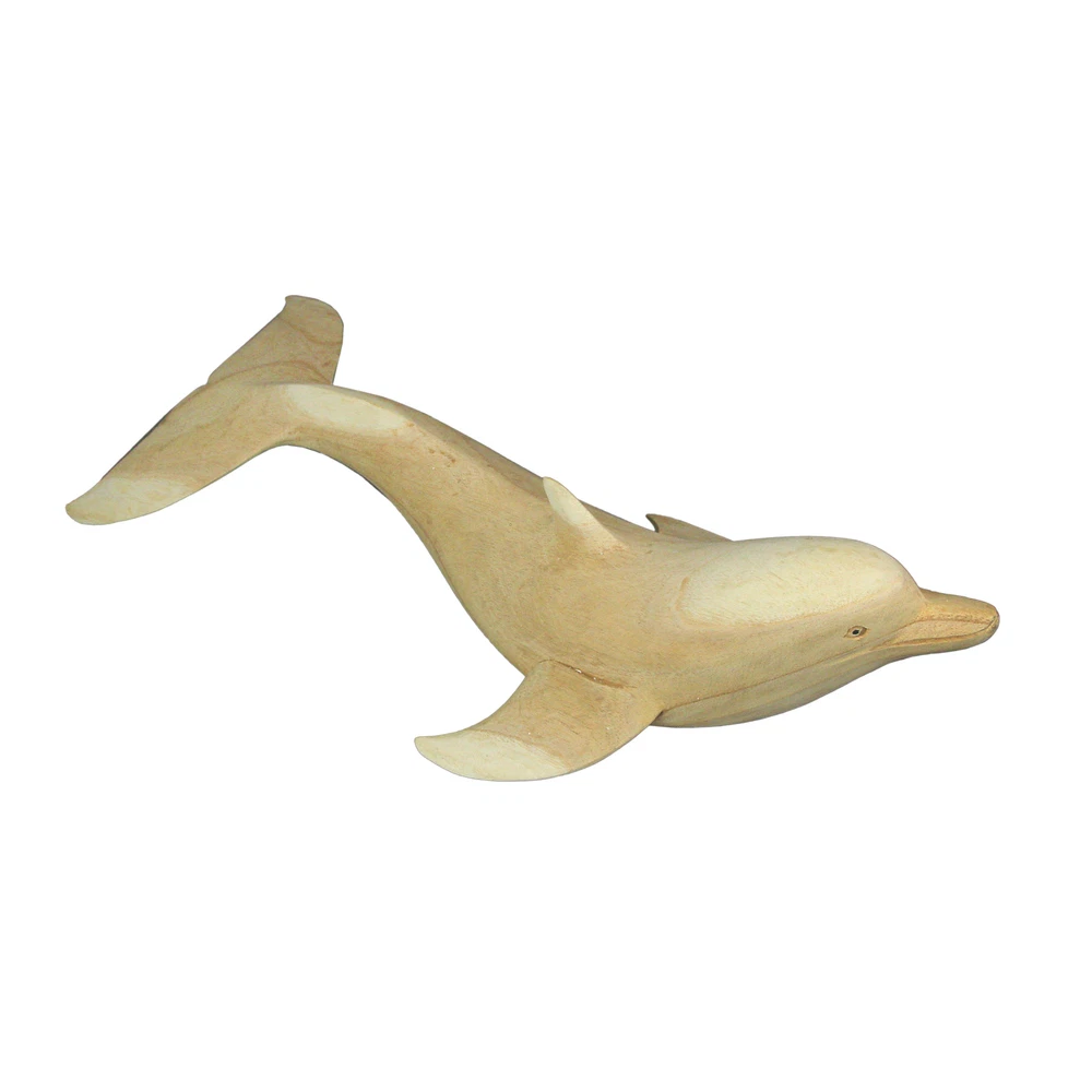 NOTE: DUE TO CHIPPED/BROKEN FINS this item is being sold at a reduced price. Please see last photo for damages/defects. Add some natural nautical charm to your home with this wooden dolphin sculpture. Hand carved from sustainably sourced wood, the natural wood finish compliments almost any decor styles, or can be painted for a DIY personal touch. Measuring 20.25 inch long, 7 inch wide, 4.75 inch high; this makes for a wonderful tabletop accent or centerpiece in your living room, bedroom, bathroom, or patio. A great gift for yourself or ocean loving friends and family. NOTE: Because of their natural wood and hand carved nature, size and color may vary slightly from the example pictured. Our eBay Store About Us Add to Favorite Sellers 20 Inch Hand Carved Dolphin Wood Sculpture Decorative Figurine Beach Home Decor NOTE: DUE TO CHIPPED/BROKEN FINS this item is being sold at a reduced price. Please see last photo for damages/defects. NOTE - DUE TO CHIPPED/BROKEN FINS this item is being sold at a reduced price. Please see last photo for damages/defects. CREATIVELY CRAFTED - Hand Carved From Sustainably Sourced Wood NATURAL FINISH - Natural Wood Finish That Compliments Any Decor Theme NAUTICAL DECOR - Perfect Accent For Coastal And Beach Themed Homes OVERALL SIZE - 20.25 Inch Long, 7 Inch Wide, 4.75 Inch High NOTE: DUE TO CHIPPED/BROKEN FINS this item is being sold at a reduced price. Please see last photo for damages/defects. Add some natural nautical charm to your home with this wooden dolphin sculpture. Hand carved from sustainably sourced wood, the natural wood finish compliments almost any decor styles, or can be painted for a DIY personal touch. Measuring 20.25 inch long, 7 inch wide, 4.75 inch high; this makes for a wonderful tabletop accent or centerpiece in your living room, bedroom, bathroom, or patio. A great gift for yourself or ocean loving friends and family. NOTE: Because of their natural wood and hand carved nature, size and color may vary slightly from the example pictured. Product Details Color Brown Height 4.75 Length 20.25 Weight 1.5 LB