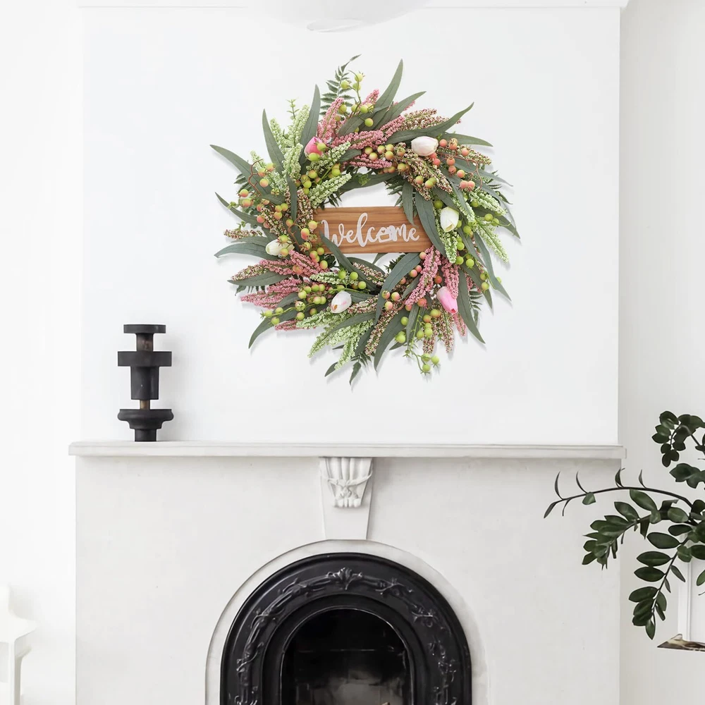 $ 7.5820 Inch Green Faux Eucalyptus Wreath with Welcome Sign for Door or Wall Decor