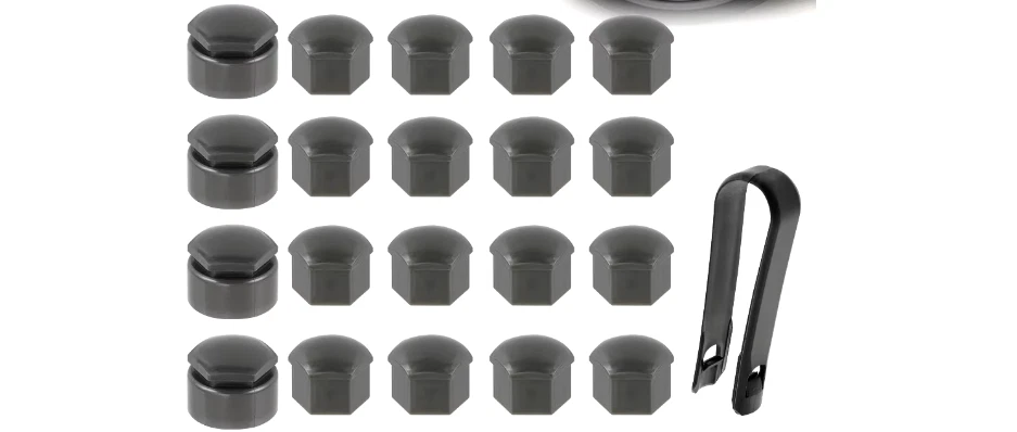PLEASE MESURE BEFORE PURCHASE! IF YOU NEED CONTACT US FIRST! NO RETURNS! 20x 17mm 24mm Wheel Nut Caps Bolt Covers Universal for most cars For Audi For VW For Vauxhall For BMW For Mercedes-Benz For MINI For Nissan Features: 1. Enhances the finish of your car wheels. 2. Protects your bolt heads from corrosion. 3. Easy to fit, simply push down onto your bolts for a firm fit. 4. These caps fit any car wheel 17mm bolts or nut. Item Specifics: Type: Wheel Nut Caps Condition: Brand New Color: Grey/Black/Sliver Material: Plastic Cap: 22mm X 18mm Internal diameter: 17mm Package Included: 16 x 17mm Standard ones 4 x 24mm Locking ones 1 x Removal tool To check whether they will be correct for your vehicle, please check the size of the lug wrench socket (tool used to remove wheel bolts/nut) which should be the same size indicated here. Size Fitment: Universal for most cars (For Audi For BMW For Fiat For Ford For Mercedes-Benz For MINI For Nissan For Opel For Nissan For Peugeot For Renault For Saab For Seat For Skoda For Suzuki For Vauxhall For VW) Note: 1. Please allow 1-3CM differs due to manual measurement. 2. These wheel nuts are universal fit; therefore they may not fit certain vehicles.