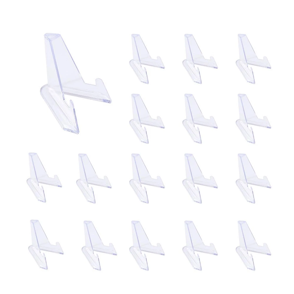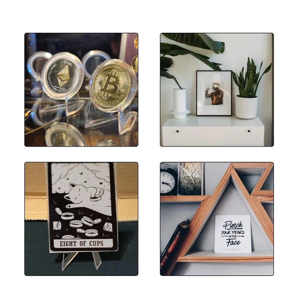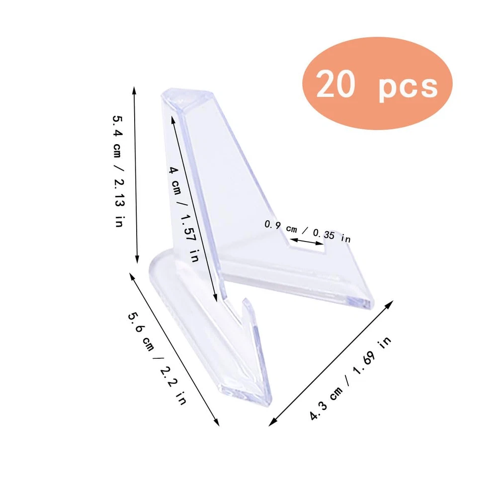 Product Name: Mini Coin Picture Display Easel Material: clear acrylic plastic Package includes: 20 x sports card display stand Color: clear Size: as pictures shown Wide application: baseball card stands is perfect for displaying your collections, such as trading card stands work well in displaying, sports card, challenge coin, graded card, trading card, football card, baseball card, medal etc. clear mini easels stands good for displaying collections in offices, exhibition halls, shop windows, art classes, museums, bookstores. Tips: Manual measurement, please allow slight errors on size. The color may exist slight difference due to different screen displays. Package Includes: You will recieve 20 pcs acrylic coin display stand, sport card stand is measured 2.13 x 2.2 x 1.69 in / 5.4 x 5.6 x 4.3 cm, small size makes it perfect for holding small items; acrylic display stands for trading card, save a ton of space, because they have a small footprint and can be stacked for storage and carry. Quality material: Our sports cards display stand is made of premium acrylic material which is sturdy enough to display your collections. the trading card stand is clear and durable, the clear colors make people not even notice the booth, only focus on the collection being beautifully displayed, mini acrylic easel display standcan be used repeatedly for a long time. Unique design: The triangular design makes the sports card stands stable and strong, will not easily fall, clear and simple design allows people pay attention only to the collection, not the mini easel stand arcylic; add an artistic touch to your space; the transparent mini easel stands is suitable for displaying items with a diameter of less than 4 inches and a weight of less than 200 grams.please stand them on the flat place, shows your collection with a perfect Angle of view, can be more prominent exhibits, is an ideal gift for all kinds of collectors. Wide application: Clear Mini Coin Display Easel Holder is perfect for displaying your collections, Such As Mini Card Stands for Sports Cards work well in displaying, sports card, challenge coin, graded card, trading card, football card, baseball card, medal etc. Clear Mini Easel Stand good for displaying collections in offices, exhibition halls, shop windows, art classes, museums, bookstores. We believe that our sports card stands for display will exceed your expectations. If you have questions, please contact us. We will try our best to solve your problems.