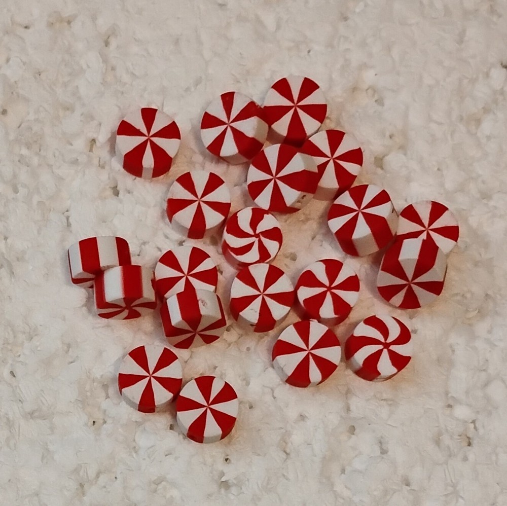 20 Pcs Christmas Candy Polymer Clay Beads, Red Peppermint Candy Beads, Cute This product is a set of 20 small disc-shaped beads made from polymer clay, designed to look like Christmas candy with a red peppermint pattern. The beads are white with red detailing, adding a cute and festive touch to any jewelry or craft project. These beads are ideal for creating holiday-themed jewelry, ornaments, or other decorative items. Made in China, these colorful and charming polymer clay beads are perfect for adding a touch of Christmas cheer to your crafting projects. Remember that the actual color of any item may vary slightly due to lighting and monitor settings. If you have any questions or concerns about a specific product, feel free to reach out to us before making a purchase. We are committed to providing prompt responses and ensuring a positive shopping experience. Penny_Pinching_Jewelry is an online store that specializes in a variety of items, including: Handmade Dangle & Stud Earrings: These earrings come in various styles, colors, and designs. From elegant to whimsical, there’s something for everyone. Window Jewelry: Discover our exquisite collection of Suncatchers . These captivating pieces come in various styles, colors, and designs. From elegant to whimsical, they add a touch of magic to any window. Explore the beauty of sunlight dancing through these enchanting creations! Kitchen Towels, Hot Pads, and Mitts: Practical and stylish kitchen essentials to add a touch of charm to your cooking space. Tablecloths: Whether you’re hosting a special occasion or want to elevate your everyday dining, the tablecloths are worth exploring. Figurines and Collectibles: For those who appreciate unique and collectible pieces. China: We also offer beautiful china, individual pieces. Art & Craft Items: We have things for the do-it-yourself customers too. Health & Beauty items: From cough medicine to eye shadows, skin care, & Deodorant’s. We may not carry all there is but, come check us out! Toys: Lego’s, Stuffed Animals, Coloring Books, Playing Cards, Chalk, and other items. Thank you for choosing Penny_Pinching_Jewelry! 🌟🛍️
