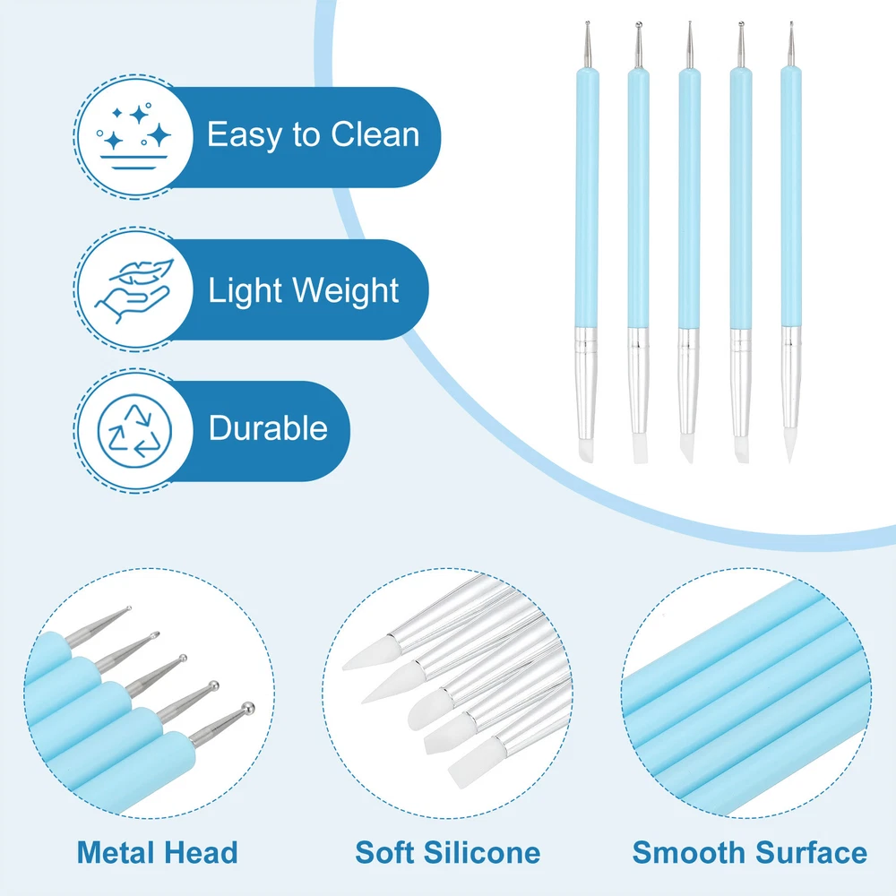 20 Pcs Silicone Clay Sculpting Tool, Pink/White (5mm/3mm)