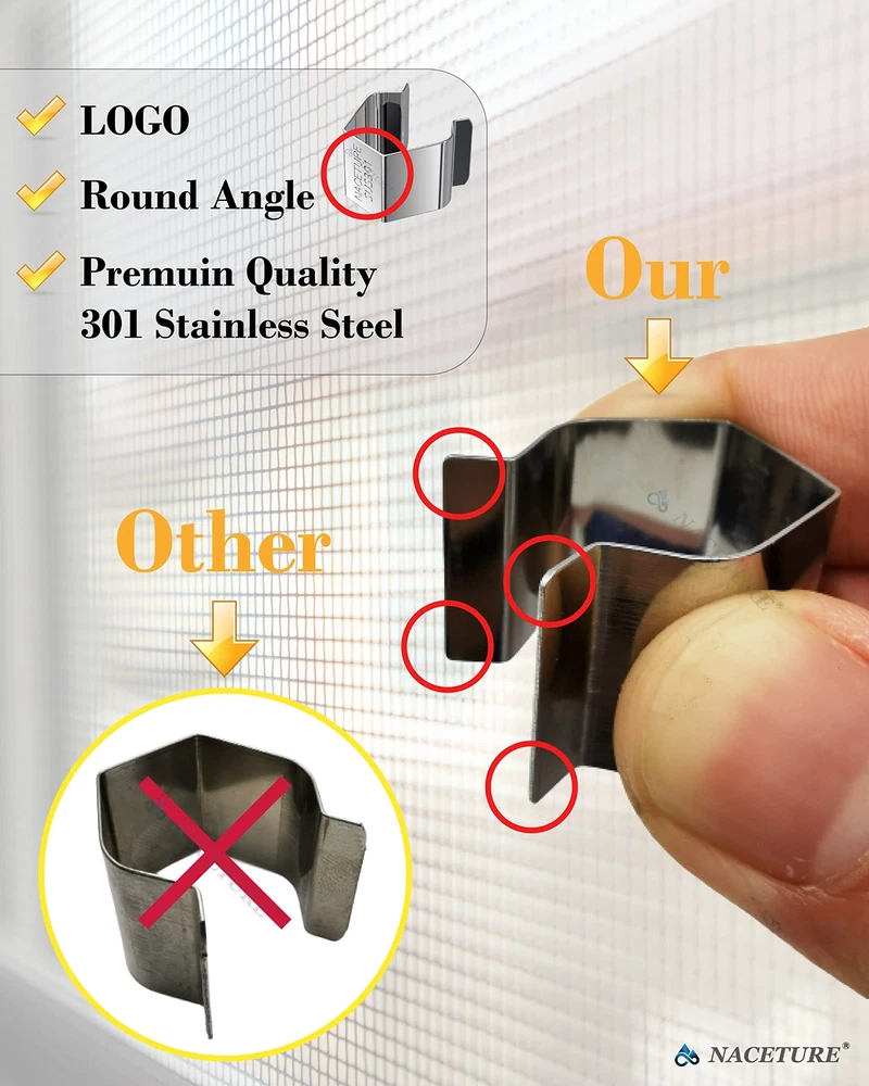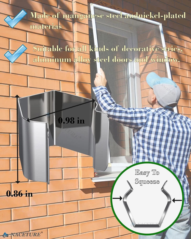 ๐๐๐๐ฎ๐ผ๐ฟ๐ ๐ผ๐ฟ๐ฒ, ๐๐๐๐ผ๐ฆ๐ฎ๐๐ฒ๐ฑ%โ ROUND CORNER DESIGN: We have improved the corners of the product into rounded corners and the design of the pressing place is more ergonomic and effortless. โ STURDY and DURABLE: This screen installer clips are made of premium quality 301 stainless steel for extra durability and long-lasting service life. Will never rust or stain your window. โ EASY TO INSTALL - This screen repait kit has excellent elasticity makes it suitable for any size of window groove,durable and easy to use and install,keep screen tight. โ FLEXIBLE SCREEN INSTALLER CLIPS - These door/windows clips clips will save you time and effort when installing patio, porch & garage screens.Made of stainless steel 301 materials, featuring amazing flexibility whichcan make the spline rolling tool easier to align and keep the screen tight. โ WIDE RANGE OF APPLICATION -Suitable for all kinds of decorative strips, aluminum alloy steel doors and window. Use them to install window screens, sliding screen doors, terrace screens, RV screens and even aquarium parachute stands, etc. Do you have trouble with replacing your screens? Need the right screen installer clips that will help you to effectively replace old screen mesh? No set is more complete than the one we are offering to you to make your job much easier and simple.Why These Screen Installer Clips Set is a MUST HAVE?FLEXIBLE SCREEN INSTALLER CLIPS - These door/windows clips clips will save you time and effort when installing patio, lanai, porch & garage screens. Made of stainless steel 301 materials, featuring amazing flexibility which can make the spline rolling tool easier to align and keep the screen tight.EASY TO INSTALL - This screen repait kit has excellent elasticity makes it suitable for any size of window groove, durable and easy to use and install, keep screen tight.Specifications:This screen installer clips are made of premium quality 301 stainless steelEach one of these clips is meticulously crafted and durable.A good helper for replacing screens at homeCompact and easy to carryRecommended to use with Plastic Screen Rollers to avoid rips.PACKAGE INCLUDES:20 x Screen Installation ClipsNotes:Please be careful of pushing too hard the clips as the metal can rip your screen at the seem.Letโs make your job simple and easy. DONโT WAIT AND ORDER NOW! It will be your best investment this year! *lucky*vorobey* Kindly note: If you would like to order more quantity than shown is available, you are welcome to place one order fox maximum available quantity and place one more order again because we always have more, than shows in available items. Best wishes TRANSLATE with x English Arabic Hebrew Polish Bulgarian Hindi Portuguese Catalan Hmong Daw Romanian Chinese Simplified Hungarian Russian Chinese Traditional Indonesian Slovak Czech Italian Slovenian Danish Japanese Spanish Dutch Klingon Swedish English Korean Thai Estonian Latvian Turkish Finnish Lithuanian Ukrainian French Malay Urdu German Maltese Vietnamese Greek Norwegian Welsh Haitian Creole Persian