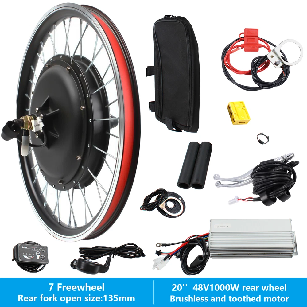 Note: while connecting the controller to the wires, please make sure that you connect the right colors to the controller. Otherwise, the controller may be broken. About the battery: The power and voltage of the battery(not included) you buy should be consistent with our set. When installing, make sure that the wiring is not reversed.Otherwise, it may damage the product. Note: Not waterproof, please do not drive on rainy days Features: 1. 48V 1000W Brushless and toothless motor specification, strong and powerful. 2. Come with powerful controller guarantee big current supply. 3. Suitable for both V brake and Disc brake. 4. The maximum speed of the motor will be 43km/h. 5. The open size of the rear fork is 135mm 6. Thumb Throttle 7. The size of the rim is 20"(Suitable for 20 inch bike). 20" Rear Wheel Conversion Kit Hub 48V 1000W Electric Bicycle Ebike Motor Cycling ❤Welcome❤ 20'' E-bike Electric Bike Conversion Kit Rear Wheel 48V 1000W Note: while connecting the controller to the wires, please make sure that you connect the right colors to the controller. Otherwise, the controller may be broken. About the battery: The power and voltage of the battery (not included) you buy should be consistent with our set. When installing, make sure that the wiring is not reversed.Otherwise, it may damage the product. Note: Not waterproof, please do not drive on rainy days This kit does not include tires !!! Specifications: Condition: 100% Brand New Optional Type: rear Motor Motor Specification: 48V 1000W Empty speed: 43m/h Load speed: 35-38km/h rear fork open size: Approx. 135mm Brake: V brake/disc brake Controller: 48V 130A Assist: 5 magnetic point assist sensor Brake Lever: Power cut-off brake lever Throttle: Thumb Throttle Display: SW-810LED Display Wiring Mode: Waterproof wire for outgoing motor, common wiring for other Highlights: 48V 1000W Brushless and tooth less motor specification, strong and powerful. Suitable for both V brake and Disc brake. The maximum speed of the motor will be 43km/h. The size of the rim is 20"(Suitable for 20 inch bike) Come with powerful controller guarantee big current supply Thumb Throttle Crank speed sensor for pedal assist The open size of the rear fork is 135mm Package List: 1 * Motor 1 * Controller 1 * Assist 1 * Electronic power brake 1 * Thumb Throttle 1 * LED Display 1 * Waterproof Wire 1 * Controller carrying case DESCRIPTION 2: Note: This kit does not include tires, which need to be purchased by the customer. It is used to install 20-inch tires and is suitable for 20-inch bicycles. Please check the product size before purchasing. ↓↓↓↓ Welcome Welcome to autocomponents999 to purchase products, please feel free to contact us for any questions.👍 Payment Delivery details Terms of sales About us Contact us Payment We accept ebay payment 。 Fees such as import duties, taxes are not included in the item price or shipping costs. These charges are the buyer's responsibility. Delivery details Shipping: 2-9 working days to: USA Terms of sales We maintain high standards of excellence and strive for hundred percent customer satisfaction. Feedback is very important to us. We hope that you contact us immediately before you give neutral or negative feedback, so that we can address your concerns. It is impossible to address issues if we do not know about them! About us Your satis faction is our ultimate goal. We work hard to earn your trust and future business. Our certified technicians have tested each item before shipping. The unit comes with 1 year limited warranty on all manufacturing defects. a) If you receive a defective item, you may return it or ask for a discount. Please contact us within 14 days after you receive the package. b) What you returned must be intact and in its original packaging as re? u. Customer is responsible for shipping costs of the returned item. c) We will cover the cost of shipping back t with the shipping rate indicated in the registration page. We will send you a new unit or refund the full payment you paid. Thank you. Contact us Business Hour Business Hour: Monday To Friday: 8:30 AM to 5:00 PM (Beijing China time) Due to time zones, our reply to your questions may not be immediately. But within above working time, we will reply your email within 24 hours. If it's non-workdays, please kindly be patient and wait till Monday. Please contact us with ebay message. Please feel free to contact us if you have any questions. Monday To Friday: 8:30 AM to 5:00 PM (Beijing China time) Due to time zones, our reply to your questions may not be immediately. But within above working time, we will reply your email within 24 hours. If it's non-workdays, please kindly be patient and wait till Monday. Please contact us with ebay message. Please feel free to contact us if you have any questions. Warranty 5 Years Manufacturer Warranty 10 Years Highlights Made of high quality material Features✔✔✔ Creative Design,Durable Material Brand Unbrand After-sales Service Yes👍 Country/Region of Manufacture Unknown Load speed 35-38km/h Empty speed 43m/h Wiring Mode Waterproof wire for outgoing motor, common wiring for other MPN Does not apply Throttle Thumb Throttle Brake Lever Power cut-off brake lever Bundle Description: No Note: Do not send to Brazil Voltage 48 V Motor Power 1000W Brake V brake/disc brake Transportation does not include: canarias Item location: CA /NJ /Austell Part Type Conversion Kit Color Black Motor Specification 48V 1000W Controller 48V 30A shipping notice: Can not ship to Puerto Rico,Alaska/Hawaii Brake Type E-Brake Rear fork open size Approx. 135mm Assist 5 magnetic point assist sensor Optional Type Rear Motor Frame Size 20 in Display SW-810LED Display UPC Does not apply