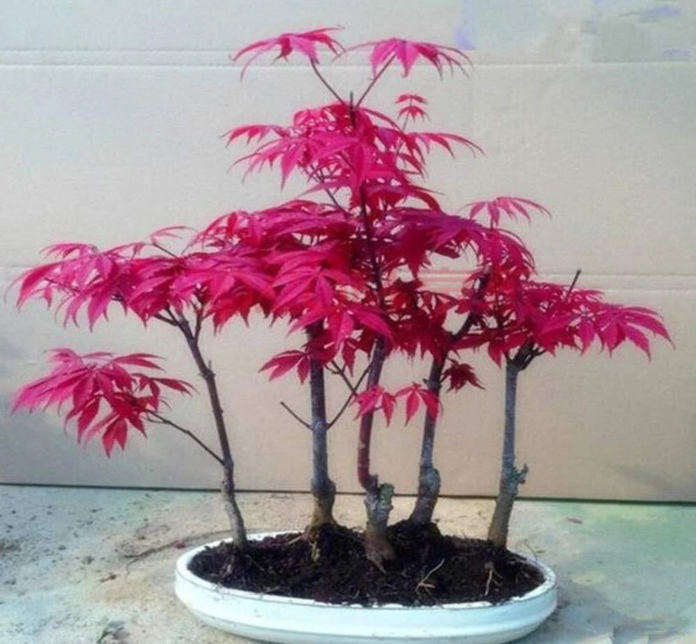 20+ Red Japanese Maple Tree Seeds Bonsai Acer palmatum Small Leaf A favourite for bonsai hobbyists, with a small leaf and graceful habit, forming the perfect miniature tree. During autumn, the trees are blessed with magnificent bright red leaves. Grows 3-4 feet within a bonsai pot or around 12 feet after 10 years within open ground. Fully frost hardy. Protect very young plants and seedlings from hard frosts initially. The trees are easy to keep small (if desired) with pruning. Makes an excellent bonsai tree as the roots are very shallow and it is easily dwarfed.