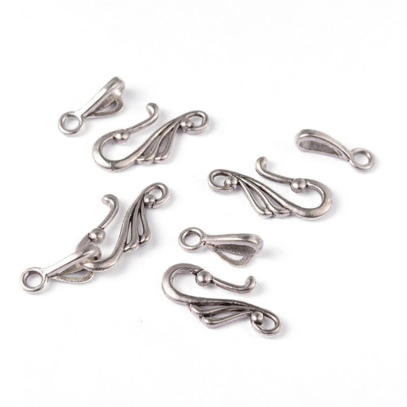 20 Sets Tibetan Style Antique Silver Wing Hook and Eye Clasps Jewelry Findings Tibetan Style Antique Silver Wing Hook and Eye Clasps, Lead Free and Cadmium Free Size: about 12mm wide, 25mm long, Tbars: about 16mm long, hole:3mm Hook and Eye Clasps made by alloy are long-wearing and easy to preserve. With the lustrous appearance and inventive design, it is popular in bracelet and necklace design. Just put the bar into the toggle and make the bar horizontal, it can be closely buckled. Priced per 20 Sets Please Note: The color may be slightly different from the picture because of different display device. Please be warmly noted: 1、Please note the photo does not show actual size, please refer to Description for size details. 2、Color may very slightly due to the color calibration of each individual monitor 3、The pictures of these Mixed beads on our website are just a reference to tell you that they are in mixed colours or mixed shapes. However, the colours or shapes we get from the factory may vary each time. Size Info Help : Please note that this is a close approximation. Inches to Millimeters Inches Millimeters 1/16 in . 1.5mm 1/8 in. 3mm 1/4 in 6mm 3/8 in 9mm 1/2 in 12mm 5/8 in 15mm 3/4 in 18.5mm 7/8 in 22mm 1 in 25mm Customer Service & Returns Customer Servicer Working Time:5:00pm-3:00am PST(Pacific Standard Time) We respond to all queries with in 24 hours. 100% Satisfaction If for any reason you are not completely satisfied, you may return your order within 30 days from the date of receipt. Noted: Welcome to leave us eBay messages if you have any problem. Your message will be answered within 24 business hours. On weekends and holidays it may take a little longer to get answers from us as we are off. When we come back to work we will answer your questions right away. Please don’t worry. Thank you for your understanding and it’s a pleasure to do business with you! Once you have received your item, please leave feedback for us as this will inform us that you have received your items. Once you leave positive feedback, our automated process will respond by giving you positive feedback that same day. Dear friend, Negative feedback does not resolve any underlying issues that you may be experiencing as a buyer. We ask you may contact us first and give us the opportunity to reasonably rectify in a reasonable amount of time, Please do not worry and get angry when you encounter any problems, please believe us,We can handle all of your questions very well, Thank you very much! Please contact us freely with any question. We will reply you ASAP. Please you do not worry and get angry. Shipping Costs and Delivery Times United States : SpeedPak delivery from China (about 8-25 business days delivered) Australia, Canada, United Kingdom: 15-25 days, sometimes 30 days France: 15-28 days, sometimes 30-35 days Russia, Brazil,Spain: 20-40 days, sometimes 40-45 days Other country: 15-25 days, sometimes 30 days There maybe some delay due to flight, holiday, weather, local post, local natural disaster impact. if your shipment delays, we hope you can be patient, and at the same time,please contact us, we will try our best to help you. Import duties, taxes and charges are not included in the item price or shipping charges. These charges are the buyer's responsibility. Please check with your country's customs office to determine what these additional costs will be prior to bidding / buying Payment We accept PayPal only. The price you see is the price you pay! No hidden charges or fees. Please make payment within 7 business days after auction ends. Please make sure your ebay address is correct,thanks