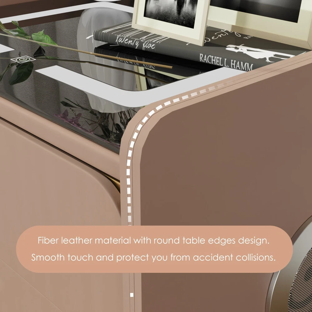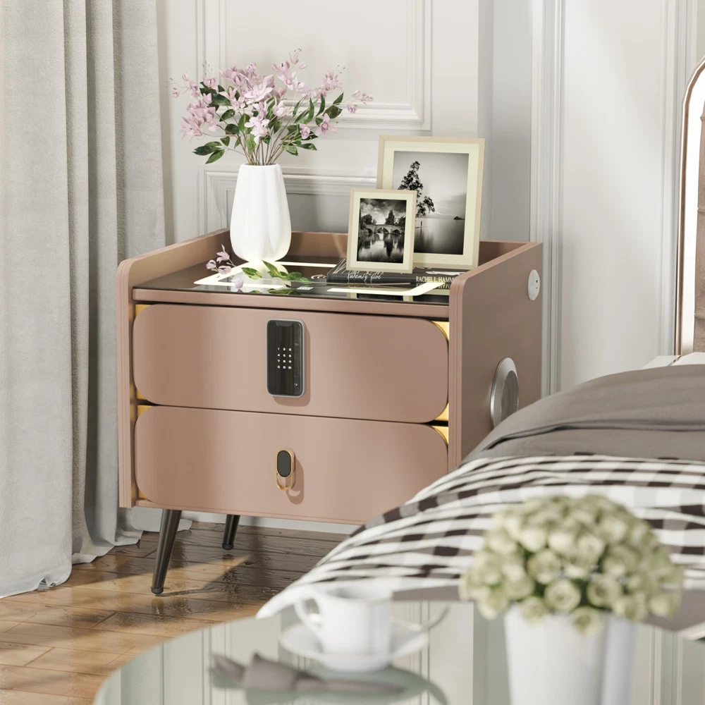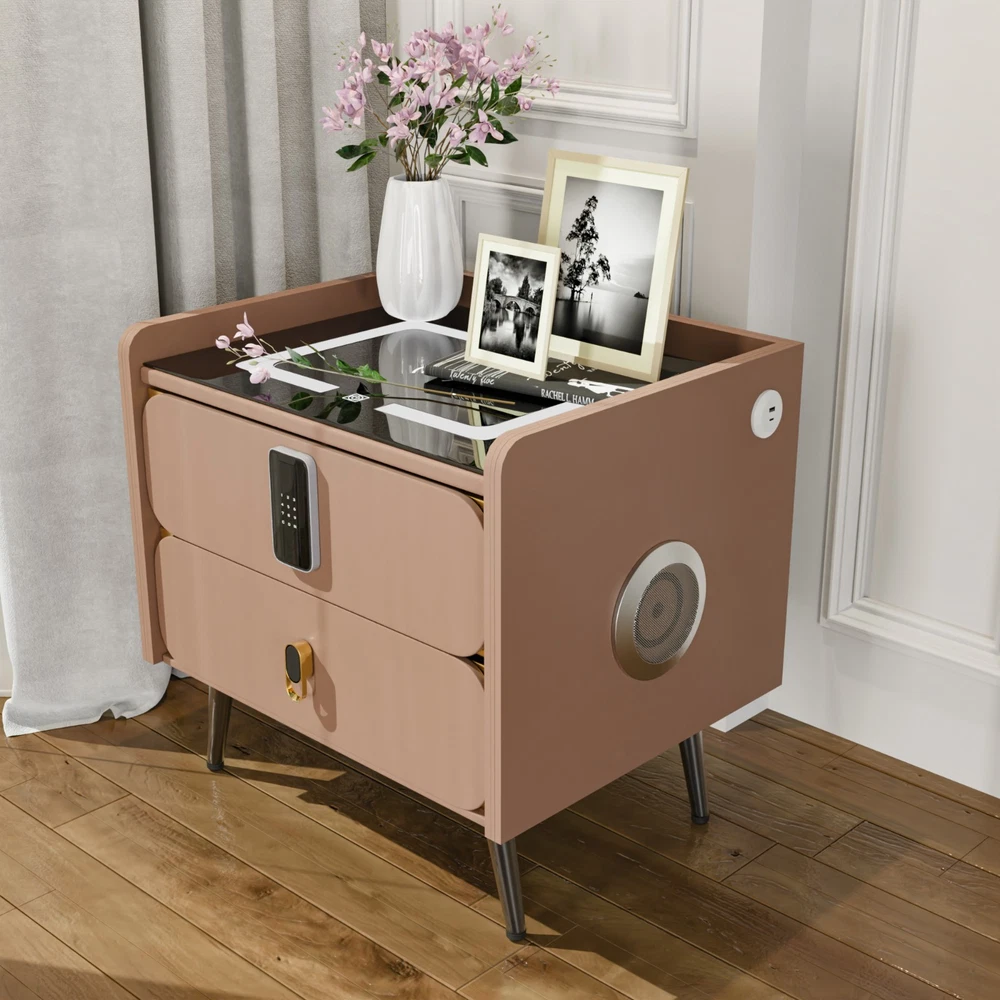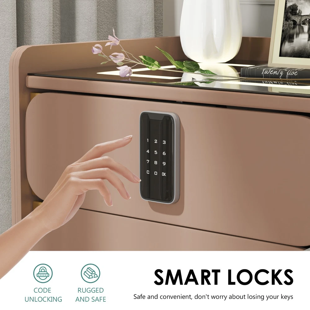 20" Tall Smart nightstand with combination lock &Bluetooth player(Light coffee) Features Smart nightstand: The smart nightstand uses a tempered glass desktop, which is not only wear-resistant and scratch-resistant; but also easy to clean. The soft sliding drawer design provides ample space to organize items and keep them tidy. With USB and TYPE-C ports and wired charging: The nightstand’s charging function with USB and Type-C ports and wireless charging makes it easy for you to charge mobile devices such as phones, tablets, readers, and more. (Only supports charging mobile phones with built-in wireless charging function). Secure combination lock: Simply set a digital password before storing and you can keep your personal belongings safe. Bluetooth speakers: There are Bluetooth speaker players on both sides of the nightstand. You only need to connect your smartphone to the speaker via Bluetooth, and you can easily enjoy wonderful music before falling asleep at night. LED 3-color adjustable light: The nightstand comes with 3-color LED (warm/cool/natural), you can adjust the lighting effect with just one touch button, you can adjust the light to suit the room as needed. No assembly:The nightstand is fully assembled before delivery and can be used without installation! Dimensions and load-bearing capacity: the nightstand is 20 inches long, 16 inches wide,20 inches high, and weighs 31 pounds. The top can bear a load of 90 pounds. Other Dimensions Legs 6'' H Overall 14'' H X 16'' W X 20'' D Drawer Interior 3'' H X 18'' W X 16'' D Overall Product Weight 31 lb. Tabletop Thickness 2'' Details Frame Material Solid + Manufactured Wood Top Material Solid + Manufactured Wood, Stainless Steel, Tempered Glass Drawers Included Yes Number of Drawers 2 Drawer Glide Type & Extension Soft Close, Metal Slide Interlocking Drawers Yes Handle Material Metal Gloss Finish Yes Lighting Included Yes Compatible Bulb Type LED Finished Back No Plug-In Yes Smart Enabled Yes Smart Home Hub Compatibility Bluetooth Natural Variation Type Natural Wood Grain Color Variation, Natural Stone Color Variation Built-In Electrical Outlet Yes Imported Yes Durability Water Resistant, Slip Resistant, Chip Resistant, Shatter Resistant, Fray Resistant Shape Rectangular Tabletop Weight Capacity 90 lb. Product Care Wipe clean with a dry cloth, Do not use harsh chemicals or cleaners, Do not use any cleaning agents, Do not put removable parts in dishwasher Integrated Wireless Charging Surface Yes USB Powered Yes Handle Finish Metal Finish Lockable Yes Manufactured Wood Type MDF Wood Species Pine Bulb Included Yes Assembly Assembly Required No Payment Delivery details Terms of sales About us Contact us Payment You could make payment via: Delivery details Packages will ship via by UPS or USPS within our handling time,once the package is shipped out ,normally shipping takes about 3-10 working days,but due to different cities and states,shipping time will be different. Terms of sales If you any problem about shipping information, or the item you got : Arrived damaged; Wrong item sent; Missing parts or pieces; Doesn't work or defective; Doesn't match description or photos. Pls click "Contact Seller" and send us message firstly. Then we could have a check and will take responsibility to resolve the problem with you in good communication. About us Our company specializing in selling all kinds of light fixtures,such as ceiling fans,chandeliers,crystal lights,retro lamps,pendant light,etc. If there's any light fixture you are interested,pls feel free to contact us for more details. Contact us Normally your message will be replied in 1 business day,If after 24 hours you do not receive our reply,please kindly re-send us the message,because sometimes ebay message system will have technical problem,so your message can't send to us successfully.