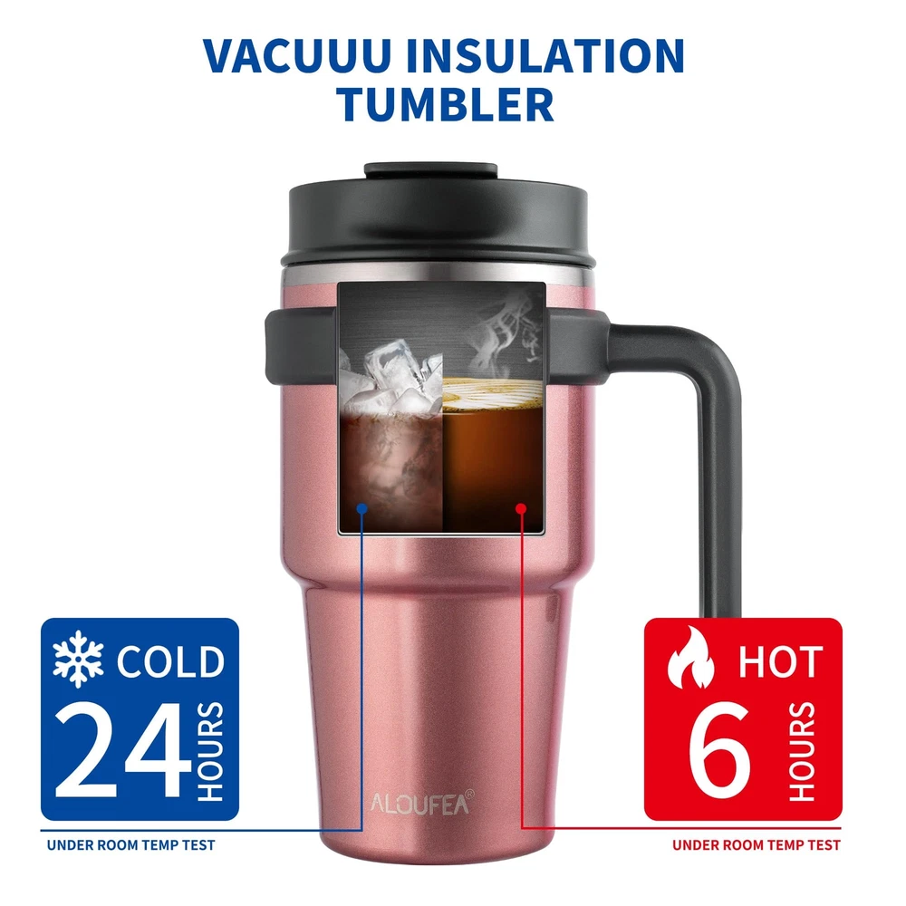 20 OZ COFFEE MUG TUMBLER: The water tumbler with handle is made from 18/8 food-grade stainless steel, it is durable, easy to wash, unbreakable, compact and portable. With a unique 2-in-1 sip and straw lid, a lid for every drinking need CUPHOLDER FRIENDLY: The bottom of the coffee cup has a tapered shape that fits perfectly into car cup holders, ensuring you can enjoy your essential hydration on even the busiest of days KEEP DRINKING FRESH: The double-walled tumbler vacuum insulation design slows down heat transfer to the outer walls, ensuring your drink stays cold or hot until the very last sip COMFORTABLE HANDLE: The coffee mug adopts the design of an open-ended large handle, easy to hold, especially for those with grip troubles, makes it easy to carry and can easily hold and take a one-handed sip BEST COMPANION FOR LIFE: The stylish colors and high-tactile insulated coffee tumbler. Not only is it perfect for daily use, work and travel drinking but also as gifts for birthdays, Thanksgiving, Christmas, friends, teachers, colleagues and sisters
