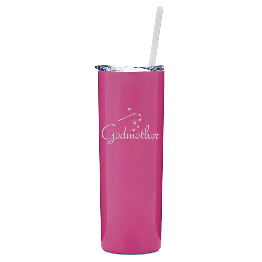 20 oz Skinny Tumbler Stainless Steel Insulated Travel Mug w Straw Godmother