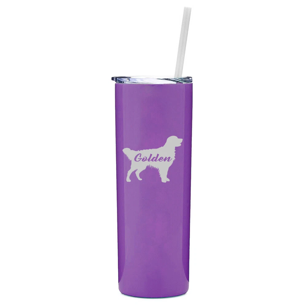 20 oz Skinny Tumbler Stainless Steel Travel Mug w Straw Golden Retriever 'Golden