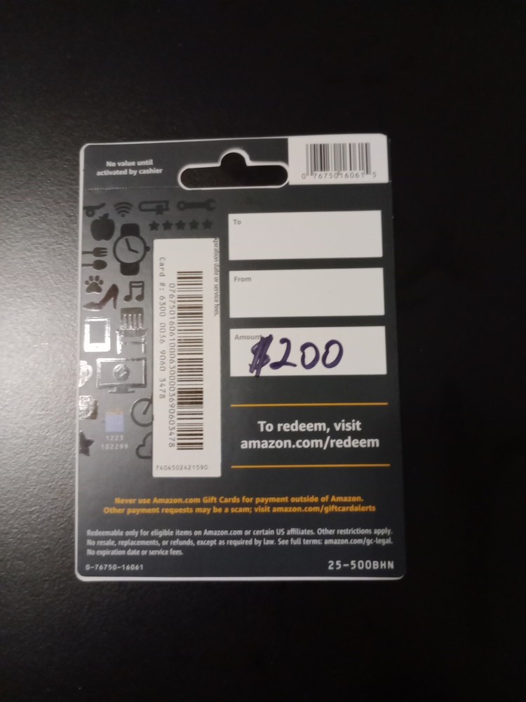 $200 Amazon gift card arrived sealed and not scratched. As expected, the card redeemed flawlessly, excellent seller, AAAAA+++++!!!!!