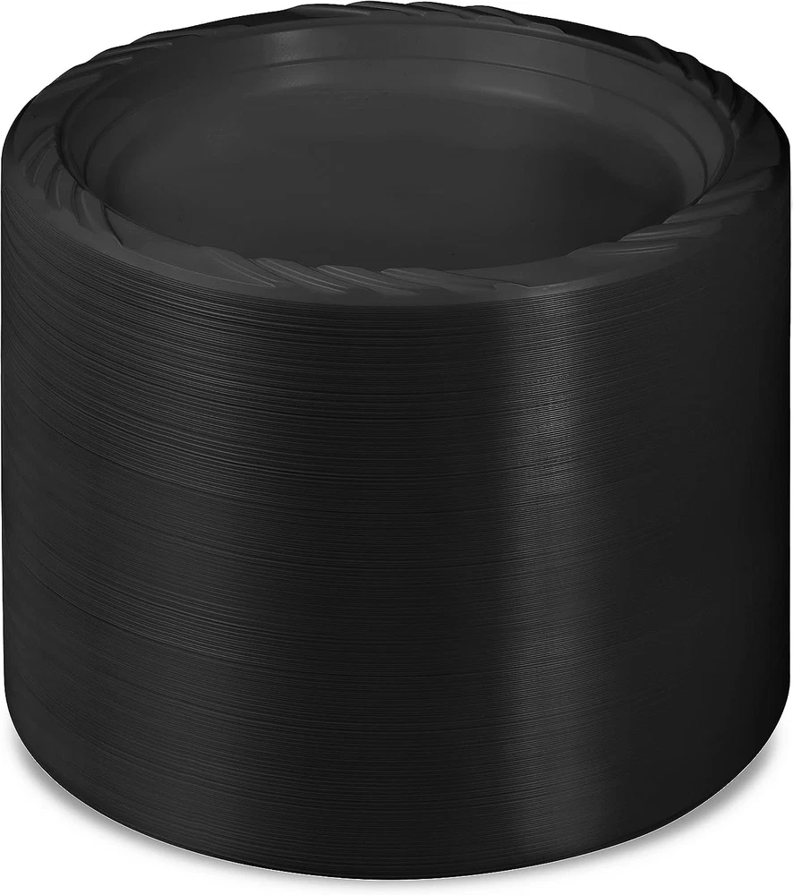 Pattern: Solid Number of Pieces: 200 Occasion: Party, Picnic, Birthday, Halloween, Thanksgiving Material Feature: Disposable, BPA Free, Recyclable Is Microwaveable: Yes Item Weight: 2.9 pounds gtin13: 7445002113182 Recommended Uses For Product: Charcuterie, Fruit, Side Dish, Appetizer, Cake, Pasta, Sushi, Che Material: Plastic Style: Tableware Country of Origin: China Product Name: Appetizer Plates Special Feature: Disposable, Lightweight, BPA Free, Microwave Safe Brand: Does not apply Included Components: Plastic Plates Item model number: MCP7200K Seasons: Winter, Summer, Fall, All Seasons, Spring Type: Does not apply Is Dishwasher Safe: No Reusability: Disposable Size: 7 Inch Color: Black Product Dimensions: 7"L x 7"W x 1"Th UPC: 7445002113182 Shape: Round