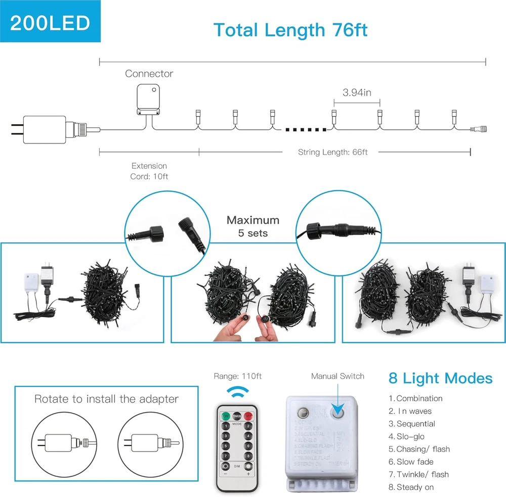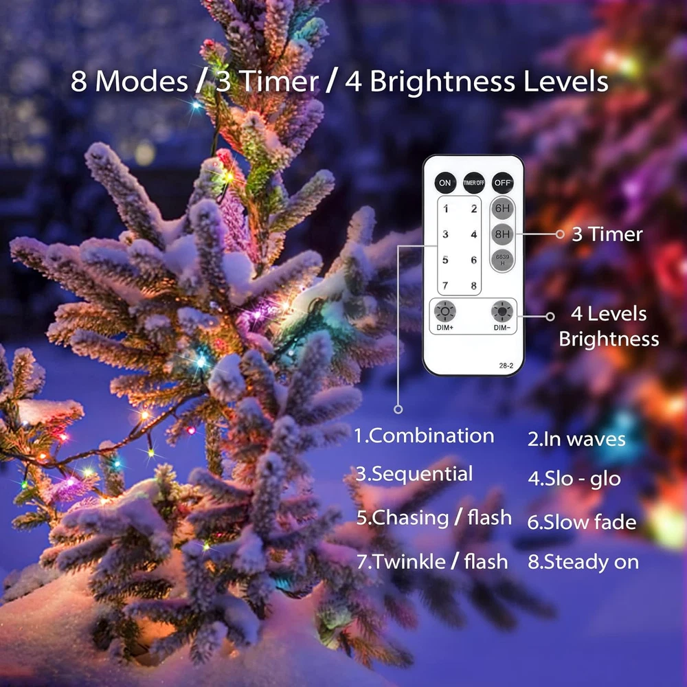 200 LED Multicolor Christmas Lights, 8 Modes Blinking Christmas Tree Lights with