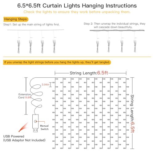 Return Policy Fast Delivery Trusted seller Curtain Lights for Bedroom, 200 Led Hanging String Lights Outdoor, Fairy Curtain Lights Indoor for Christmas, Dorm, Wall, Backdrop, Window, Wedding, Party, Brithday Decor, Warm White Product Description [8 LIGHTING MODE/ TIMER] Steady on and 7 flashing modes: Combination, in waves, sequential, slo-glo, chg/ flash, slow fade, and twinkle/ flash. The timer will keep the fairy lights turned on for 6 hours, with an 18-hour off every 24 hours. You can press the timer button for over 3 seconds to turn on/ off the timer function (lights flash twice means the timer is on/ flash once means the timer is off). [REMOTE CONTROL/ MEMORY FUNCTION] T are 8 buttons corresponding to 8 modes on the remote. You can control the string lights indoors within 72 feet. (Note that you'd better aim the remote control at USB.) The remote also saves the last mode and brightness you choose automatically. So you don’t need to reset them next time. [CHRISTMAS CURTAIN LIGHTS] Plugging in the USB is more convenient than the electrical socket especially when you are outdoors. You can plug it into a power bank, a laptop, etc. The instant you plug in, the white Christmas lights turn on. Then press the button on the USB to switch the mode. Once pull the plug out, every function should reset next time. [SIZE] The 200 led hanging Christmas lights have 10 strings. Each string has 20 led bulbs. The length of extension cord is 9.8 feet. The Christmas curtain lights size is 6.5 ft*6.5 ft. [IP44 WATERPROOF/ SAFETY] The IP44 waterproof grade is adequate protection against rain and snow, which does not affect the outdoor Christmas waterfall lights. (Note that the USB is not waterproof.) Fairy lights and the USB will always keep a low temperature. It’s 100% safe to touch them. [PERFECT FOR DECORATION] Strings, USB and the extension cord are transparent and clear. Perfect for indoor and outdoor decoration as well as Christmas, Valentine's Day, Holiday, wedding, party, bedroom, living room, garden, etc. Decorate your home this Christmas, you will receive compliments from your neighbors and friends! [ADJUSTABLE BRIGHTNESS] T are two buttons on the remote control to adjust the brightness. Different light make you feel different. Bright light is suitable for a Christmas party. Dim light is suitable for rest. [SATISFACTION SERVICE] The waterfall lights come with 30-day exchange service and 12-month quality maintenance. And we will be 24/7 online. If you have any questions about this product, please tell us, we will solve problems for you. Shipping Returns Payment Shipping Shipping is FREE to all addresses other than APO/PO boxes in the lower 48 states. All our stock ships from US-based warehouses. Shipped via USPS or UPS (depending on location and package weight) Unless stated otherwise, all orders will ship within 24-72 hours of your payment being processed. Check our feedback to see the great reviews of FAST shipping we offer. Returns Seller does not accept returns Payment We currently accept payment via eBay managed payments only. Once payment is cleared, we will dispatch your shipment within 1-3 business days. Please refer to the "Shipping" tab for more information regarding shipping speed to your destination.