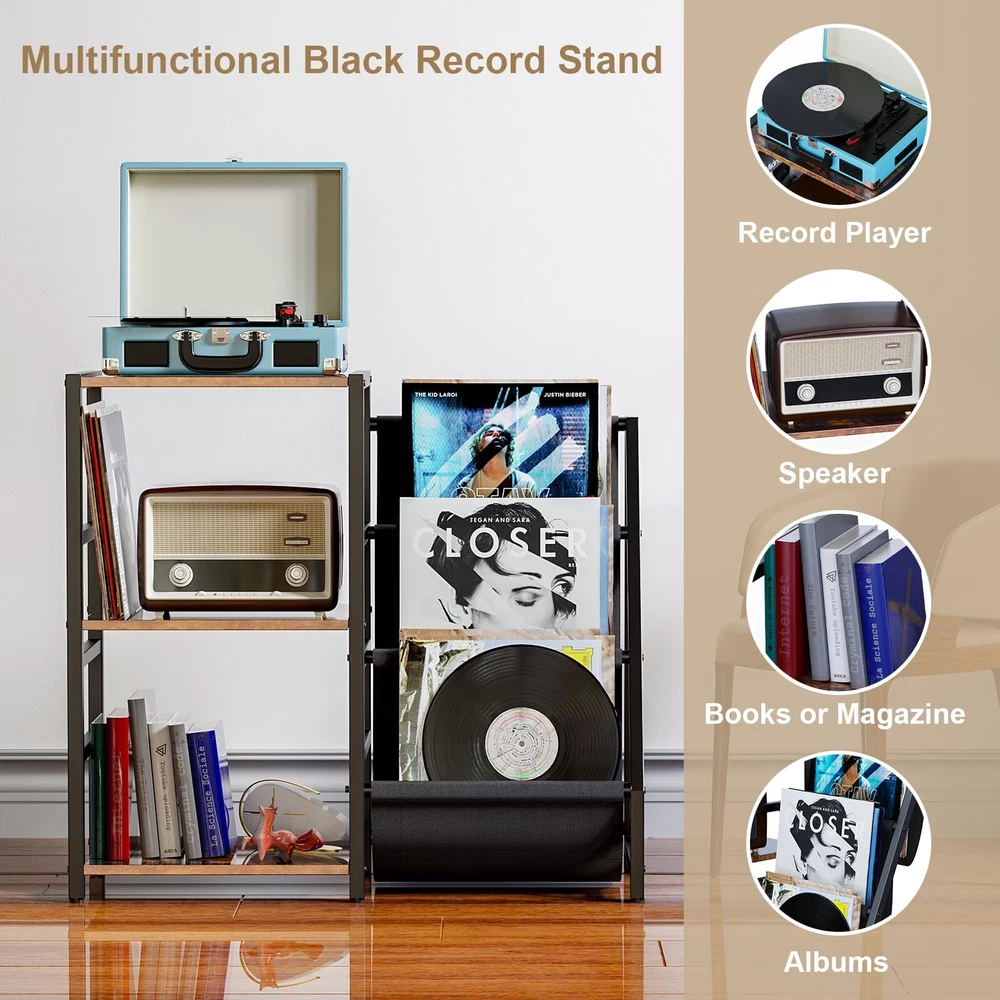 Vinyl Record Display Stand with 3-Tier Storage – Retro Turntable Table Elevate your vinyl collection with this 3-tier vinyl record display stand . Designed for music enthusiasts, this retro-inspired turntable table offers ample storage for over 200 albums, blending style and function to create the ultimate music corner. Its sturdy construction and elegant design make it perfect for showcasing your record player and albums while complementing your decor. Features Multifunctional Design : Provides versatile storage for record players, albums, speakers, books, magazines, CDs, and collectibles. Large Storage Capacity : Holds over 200 vinyl records with additional space for media essentials and decorative items. Sturdy & Durable : Crafted from high-quality wooden boards, a robust iron frame, and soft Oxford cloth for scratch-free storage. Retro Aesthetic : Combines mid-century style with modern functionality, adding charm to any living room, bedroom, or office. Easy Assembly : Includes detailed instructions and labeled components for hassle-free setup. Product Dimensions Size : 33"(L) x 30"(H) x 11.8"(W) Organize your collection by genre, artist, or era and create a functional yet stylish music haven. This vinyl record stand is the perfect choice for collectors who value both form and function! We offer 1-5 Days Free shipping & 30-Days Free returns