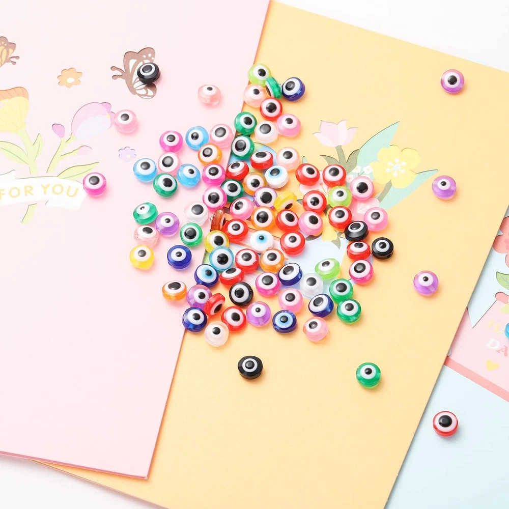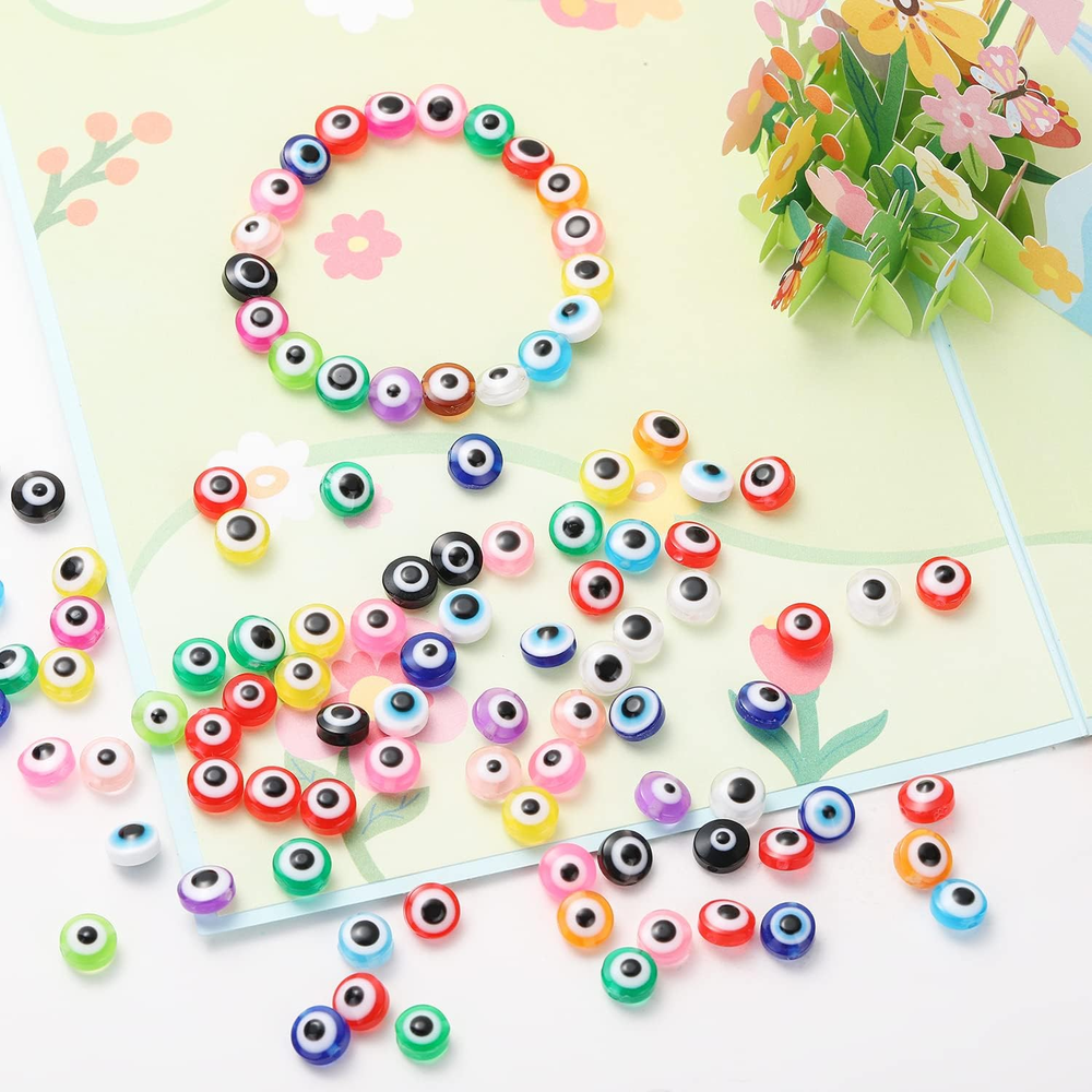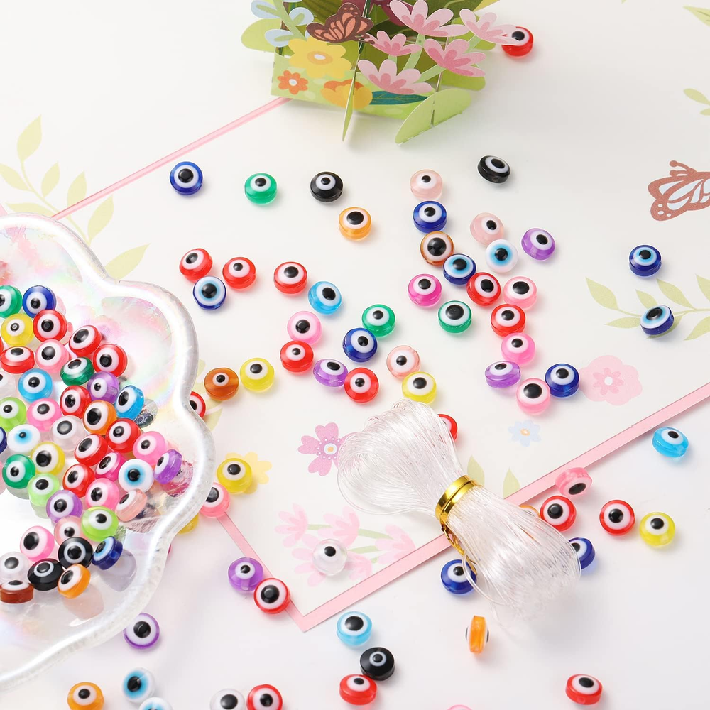 150 Pcs 5 Colors Handmade Evil Eye Lampwork Beads, 8mm Flat Round/Disc Turkish E