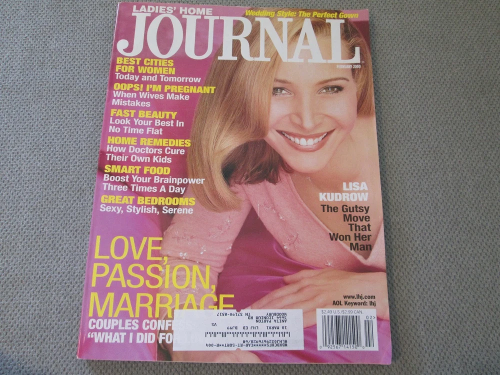 2000 Ladies Home Journal February Lisa Kudrow Smart Food vintage magazine NOTE: back cover has a tear Note: All magazines that I list may have some scuffing, fading, creasing, stress lines at the staples, spine roll, flecking, address label. Any major flaws will be noted in the description but please check the photos for more condition. You will receive the actual item in the photo of this listing. ***NOTE: may have the following conditions- writing and/or underling, name, creases on dj, pages or cover, dinged corners and other issues. Each book will be a very readable copy.