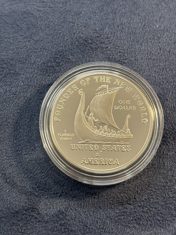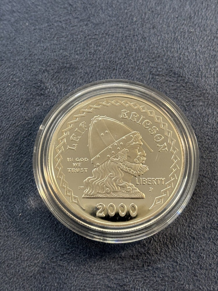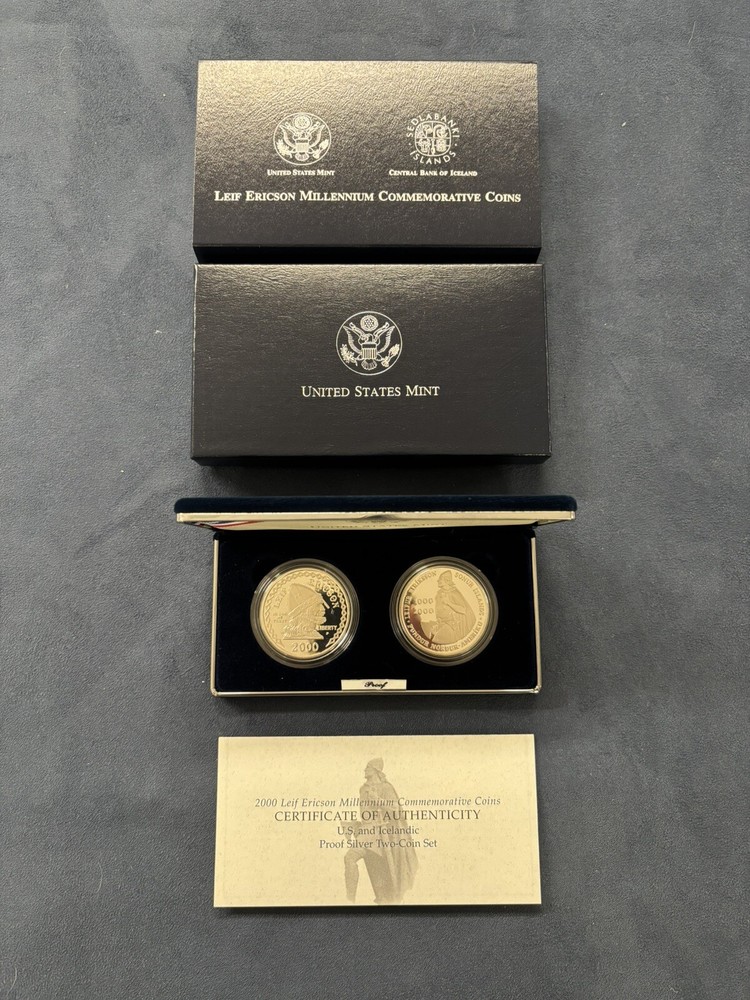 2000 United States Mint Leif Ericson Millennium Commemorative Coins . Two coins with original government packaging and Certificate of Authenticity.